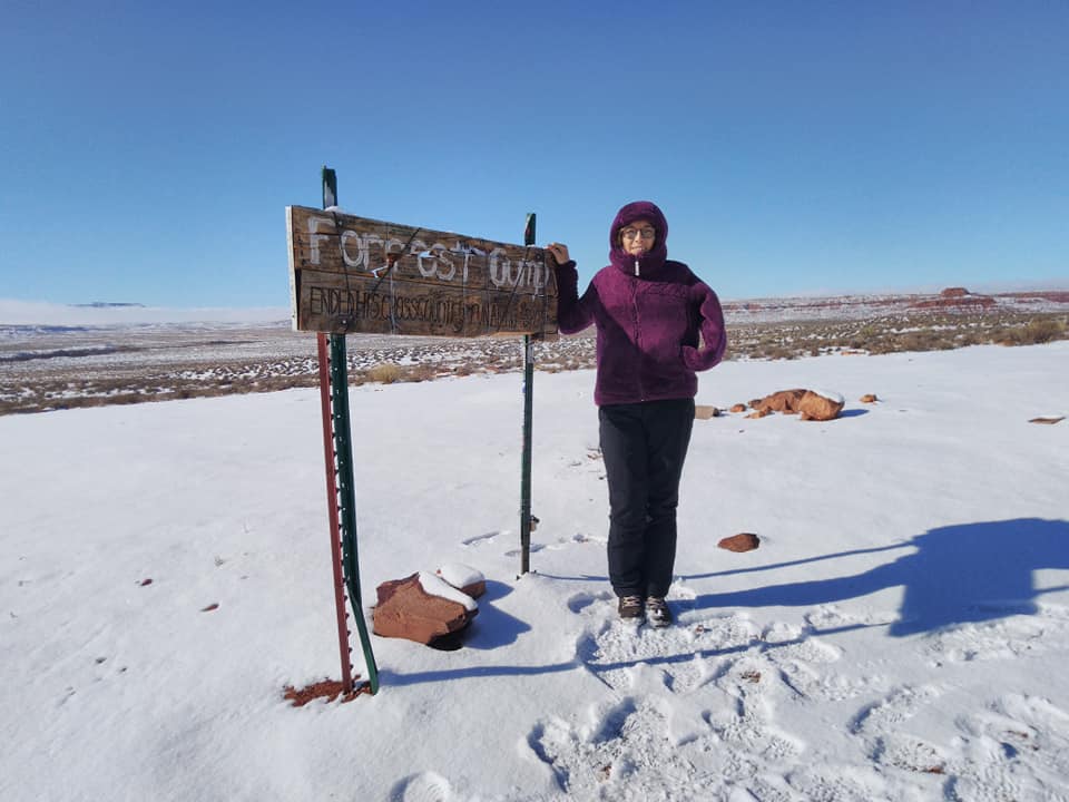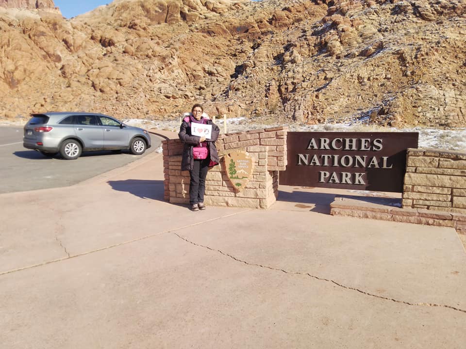 Nous étions dans le secteur de Moab, plus particulièrement dans le parc de Arches. Nous étions sur le sentier de Delicate Arch et une fois arrivés au sommet, j'ai glissé sur une plaque de glace.
