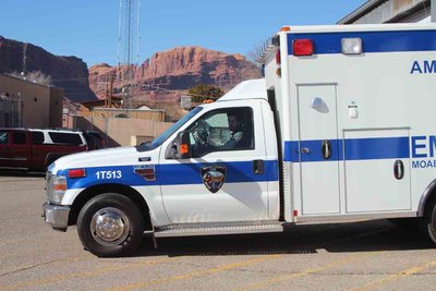 Une fois en bas, je suis montée dans l'ambulance, ils ont photographié ma pièce d'identité et mes documents d'assurance et j'ai été conduite au centre hospitalier de Moab.