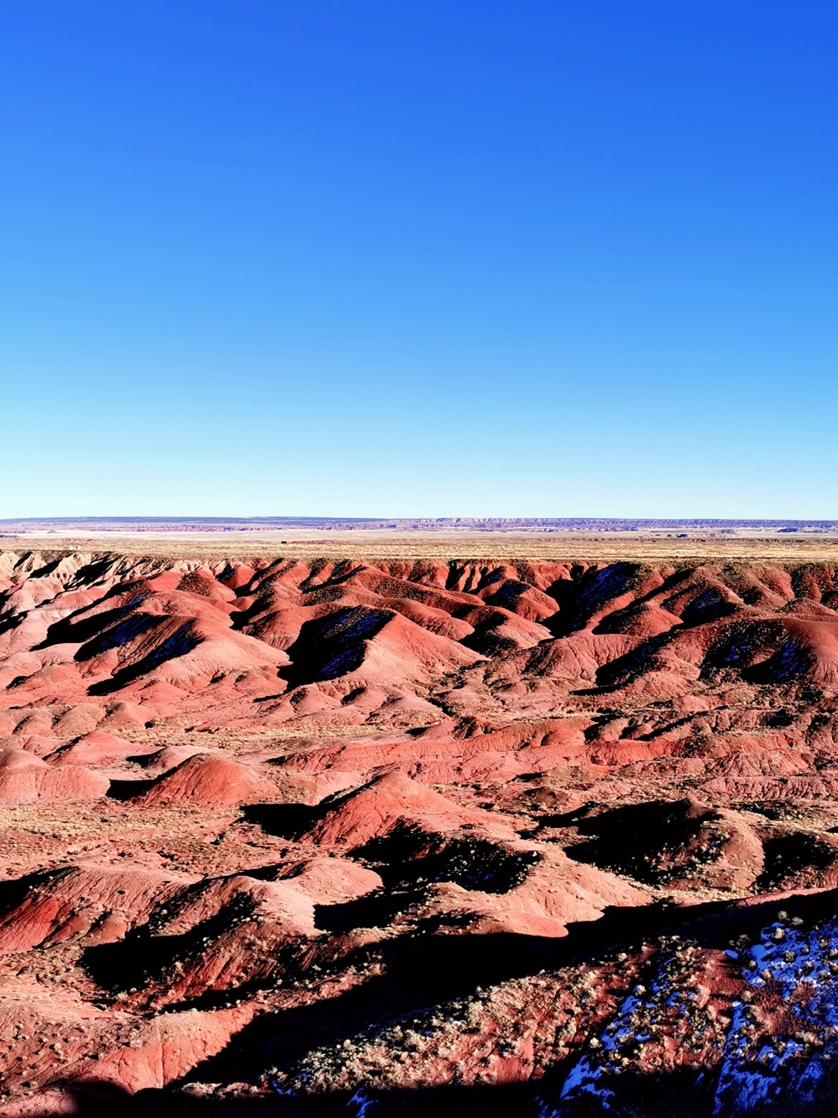 Très grosse journée en perspective. Elle a démarré par le semi marathon, couru dans la partie Ouest de Saguaro (magnifique). J'ai traversé la superbe région du Salt River Canyon, en territoire Apache. Puis j'ai rejoint Petrified Forrest et Painted Desert que je ne connaissais pas non plus. J'ai dormi au Motel 6 de Hollbrook.