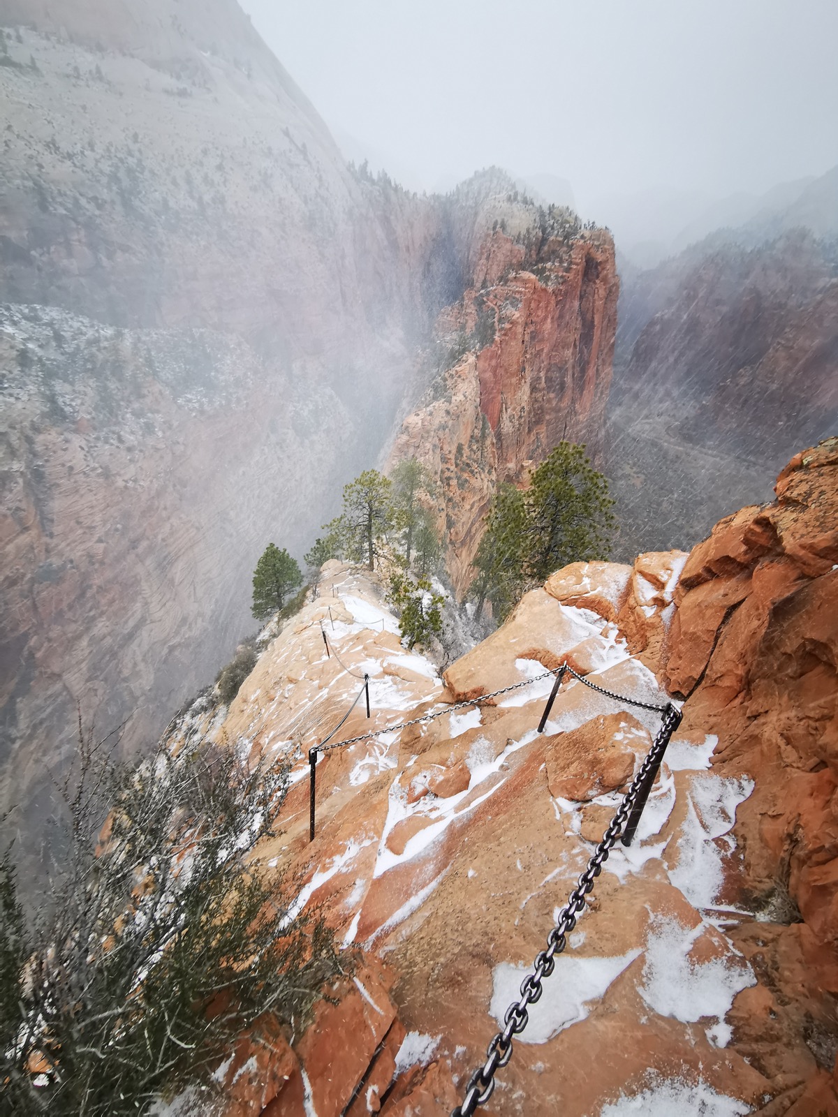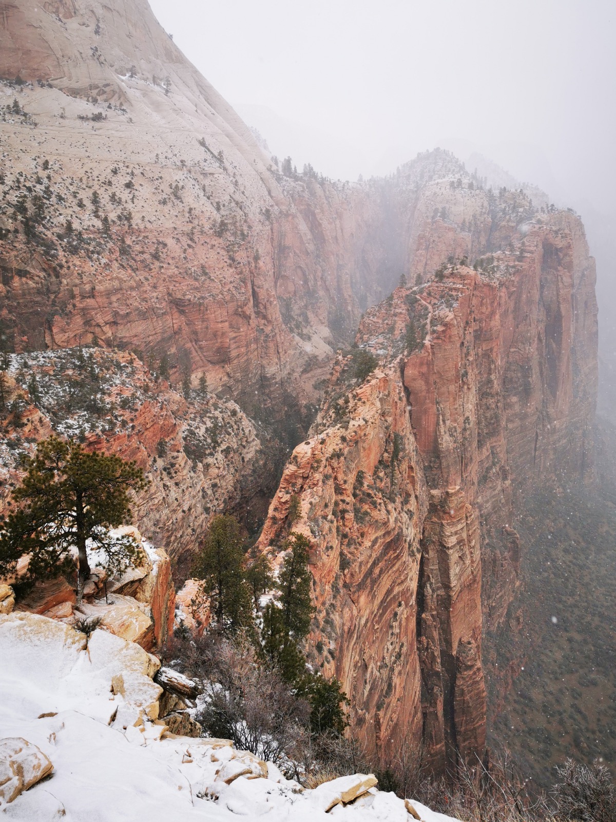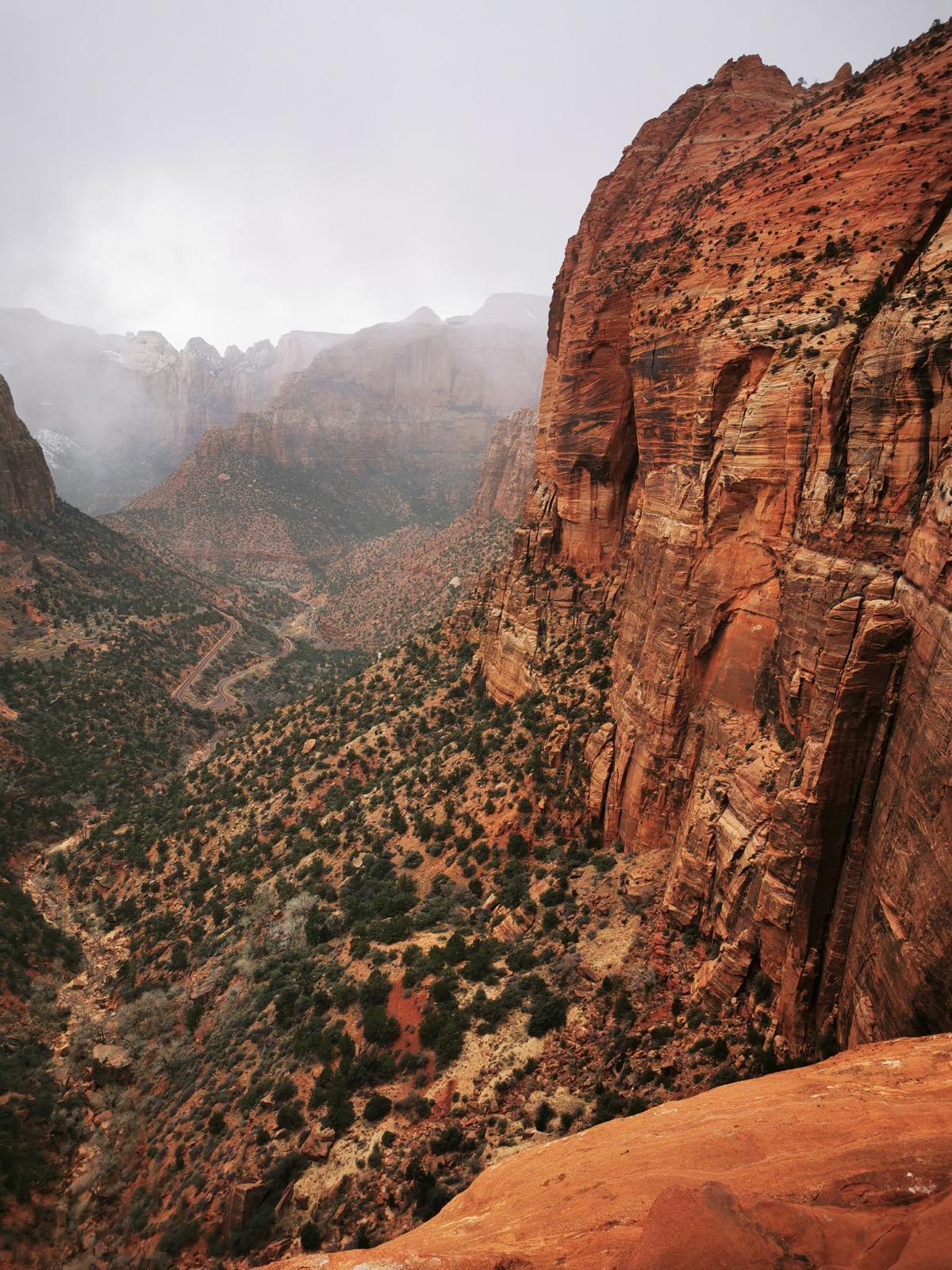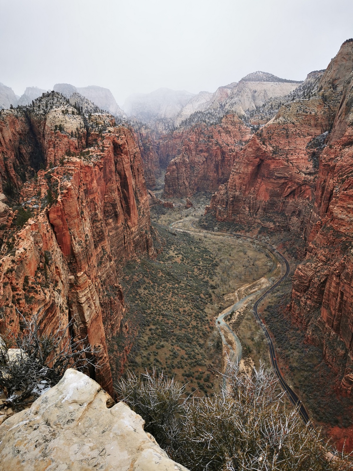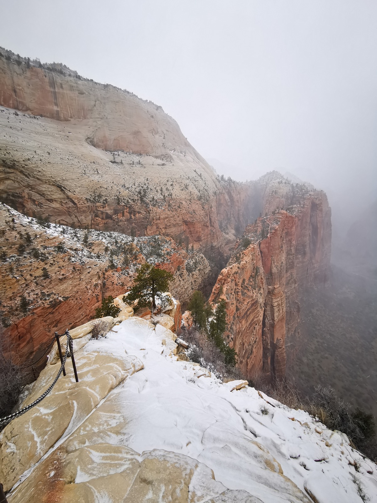 Après avoir vu un semblant de lever de soleil, direction le Canyon X à Page. Je voulais absolument tester cette alternative à Antelope Canyon et je n'ai pas été déçu !! Je voulais ensuite aller à Horseshoe Bend mais une tempête de neige en a décidé autrement... J'ai donc filé à Zion (sous la neige) pour faire le Canyon Overlook Trail. Pour cette première nuit ici, j'ai dormi au Zion Park Motel à Springdale.