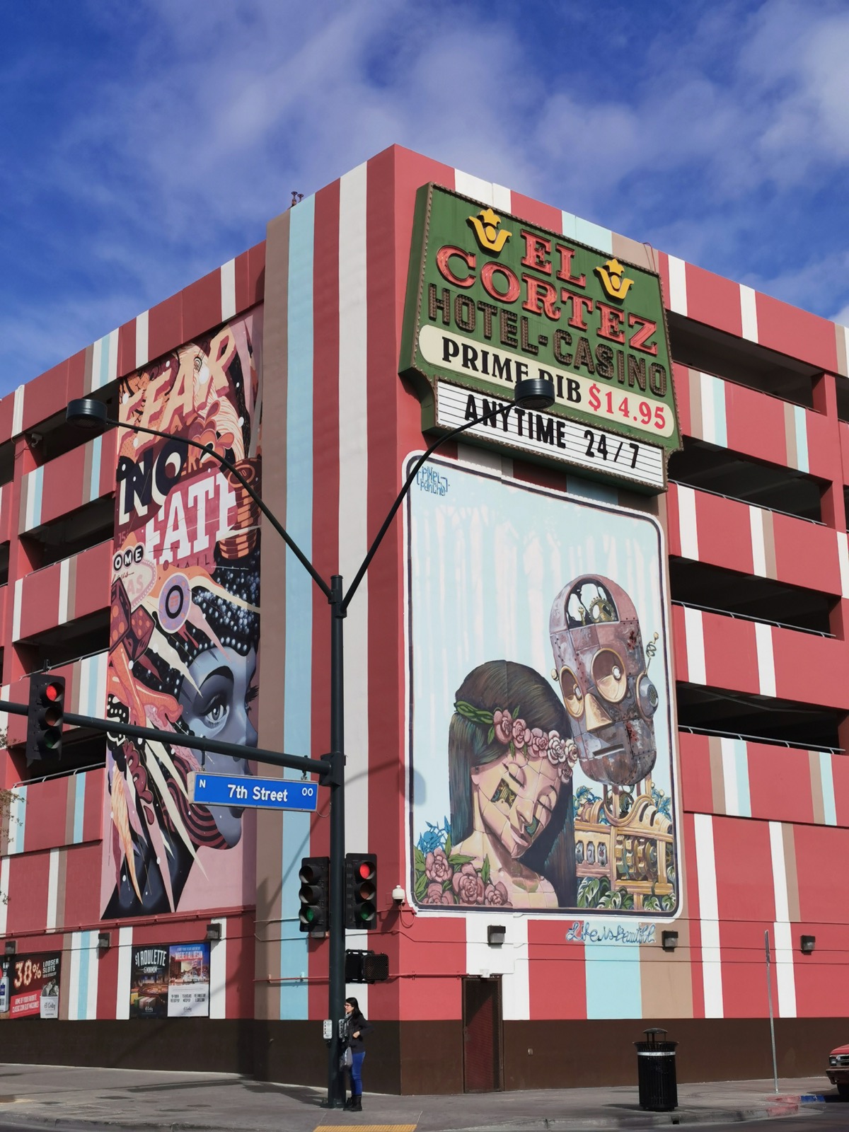 Départ de bonne heure ce matin-là, car j'avais rendez-vous avec Sandrine, notre guide Voyage En Français pour la visite guidée "Old Vegas et son street art". Là encore, une super visite où j'en ai pris plein les yeux. Après-midi consacrée au Strip. Pour cette première nuit à Vegas, j'ai dormi au Treasure Island.
