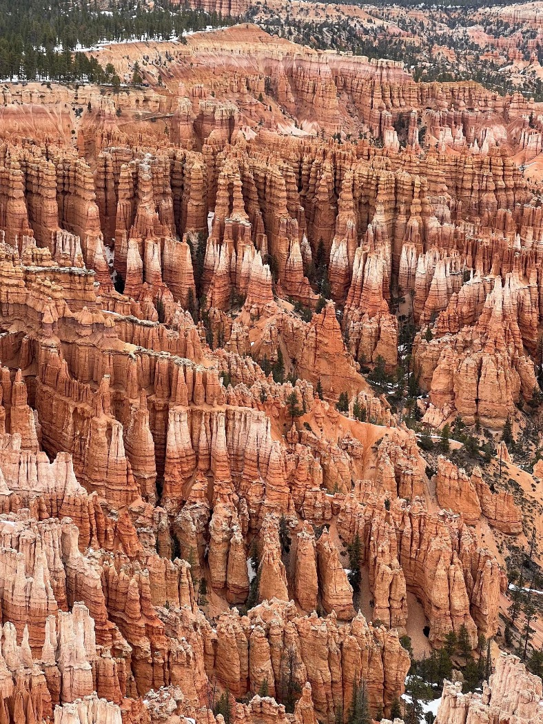 Nous traversons une dernière fois Zion avant de prendre la route pour Bryce Canyon que l'on sait être sous la neige... Là encore, nous avons dû nous adapter et changer les plans de départ. Nous avons décidé de laisser la voiture au Visitor Center puis d'utiliser les navettes (très pratiques). Direction Bryce Point pour marcher ensuite le long de la Rim pour rejoindre Sunrise Point. De là, nous nous sommes engagés dans Queen's Garden Trail. Navajo Loop étant fermé nous avons enchaîné avec Peek-A-Boo trail pour revenir à Bryce Point. Une super balade au milieu des Hoodoos enneigés. Direction ensuite le début de la Cottonwood Canyon Road pour rejoindre notre hébergement du soir. Et pas des moindres !! Le Bryce Glamp and Camp !
