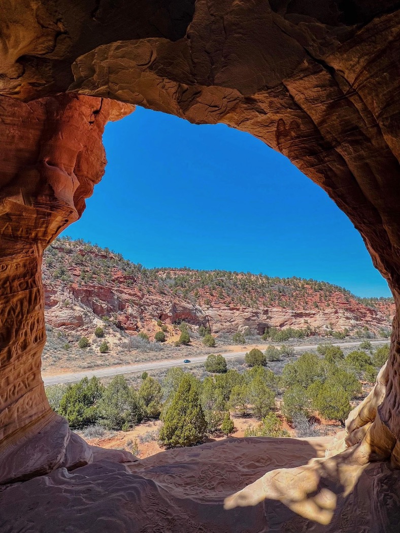 Cette journée était un peu particulière. Je voulais absolument tenter la loterie pour The Wave et pour cela nous devions nous trouver dans une zone géographique bien précise. Nous avons donc commencé la journée par Mossy Cave, juste avant l'entrée de Bryce (je vous recommande). Puis sur le trajet vers Kanab, nous avons fait un arrêt pour le moins original avec la découverte de Belly of the Dragon. Courte mais originale, cette rando mérite le détour, d'autant qu'elle est très accessible. Après ça, rien à voir, passage chez Best Friends Animal Society. Il s'agit du plus grand refuge pour animaux des Etats-Unis. Nous avons eu la chance de pouvoir offrir une balade à Gila, un super Husky. C'était ensuite le jour de la lessive et donc de la loterie pour The Wave... C'est en pleine nature que nous avons rejoint notre Tiny House, pour la nuit !