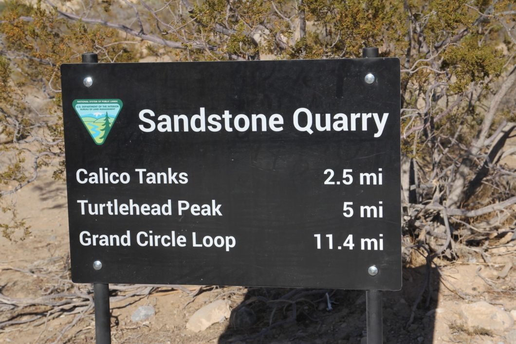 Le Calico Tanks Trail est un sentier dont le point de départ est situé à proximité du troisième parking que vous rencontrerez dans le parc de Red Rock Canyon, celui de Sandstone Quarry.