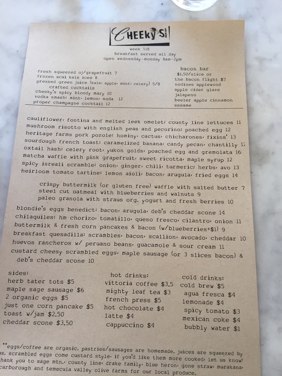 Cheeky's est un petit bâtiment dans le style architectural cher à Palm Springs. Une toute petite salle pour prendre le repas à l'intérieur et une immense terrasse en extérieur vous permettront de prendre un succulent petit déjeuner.