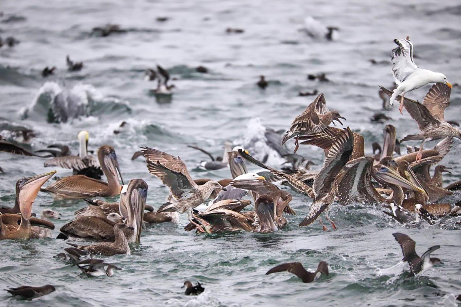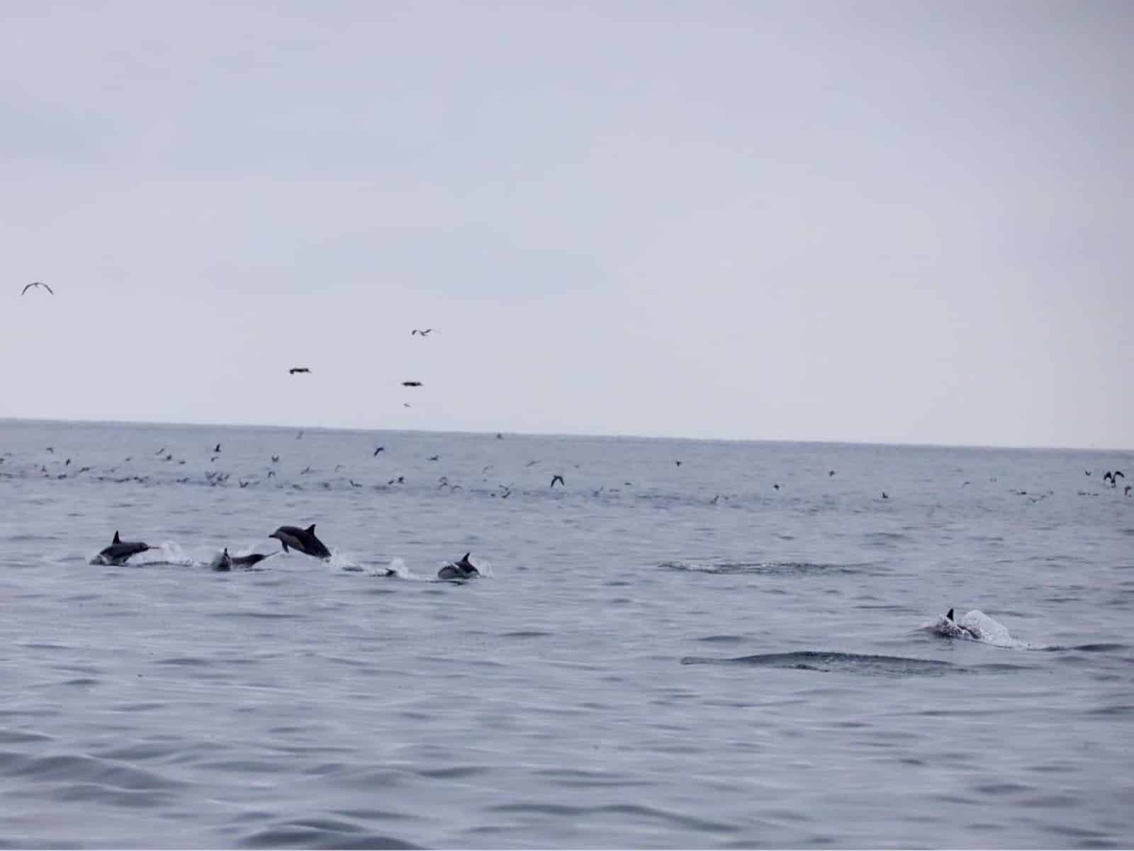 Alors oui, j'ai vu des dizaines, voir même des centaines de dauphins. J'ai eu la chance d'assister à une partie de pêche incroyable où dauphins, pélicans, mouettes et autres oiseaux marins faisaient un véritable banquet au milieu de bancs de sardines. Là, pour le coup, c'était hyper impressionnant. Quel plaisir de voir les dauphins suivre notre bateau et calquer leur vitesse sur la vitesse de croisière de ce dernier. Ce fut un spectacle magnifique. Ajoutez à cela de beaux lions de mer et la journée a été presque parfaite.