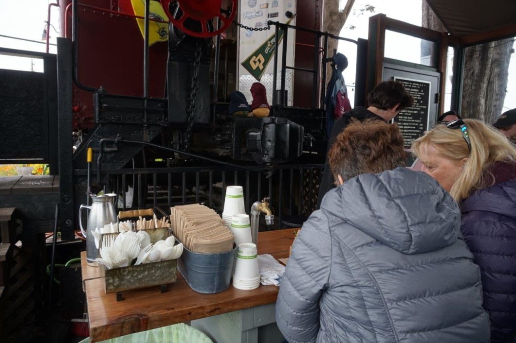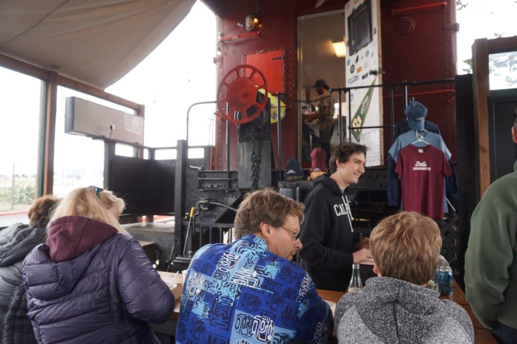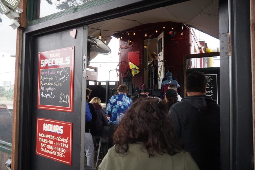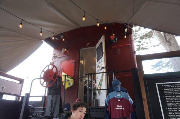 La cuisine est dans le wagon, on y voit Scott, casquette vissée sur la tête, préparer les repas. Il fait aussi office de serveur ! Je ne sais combien de fois il monte et descend les quelques marches qui séparent sa cuisine à la salle !