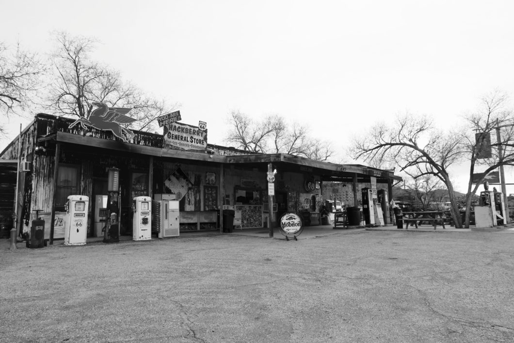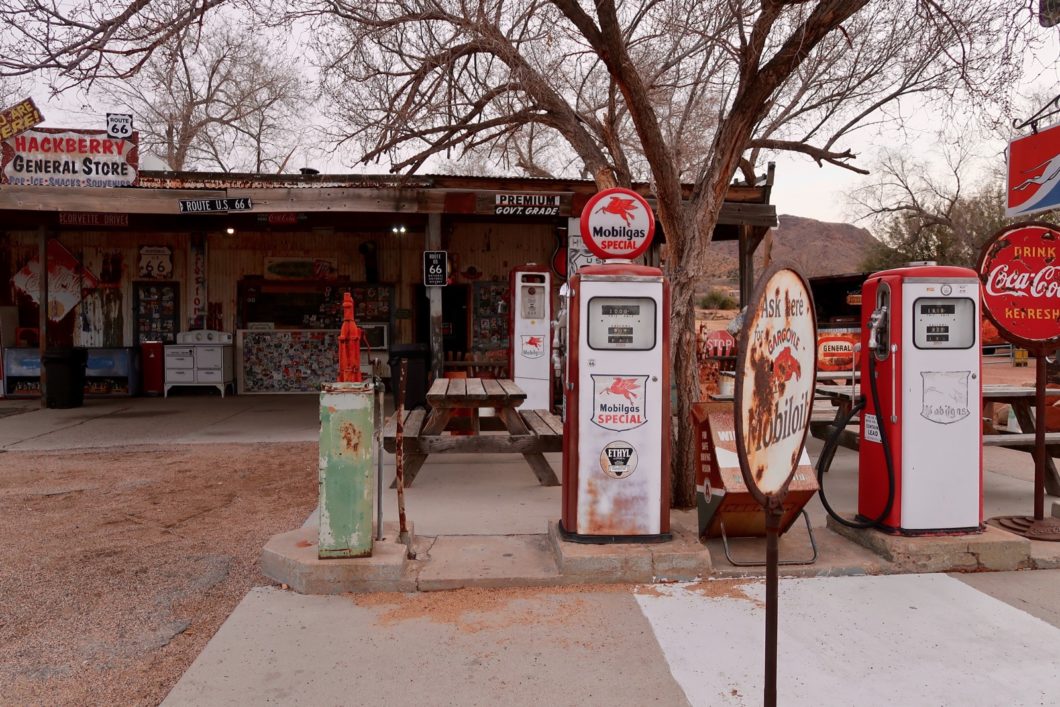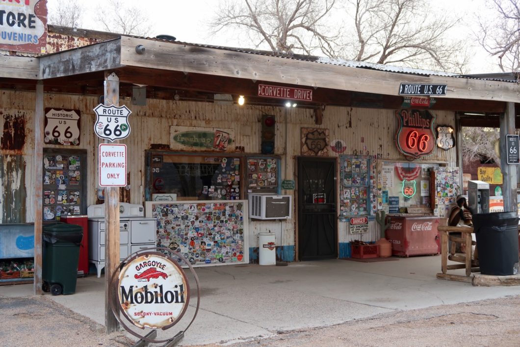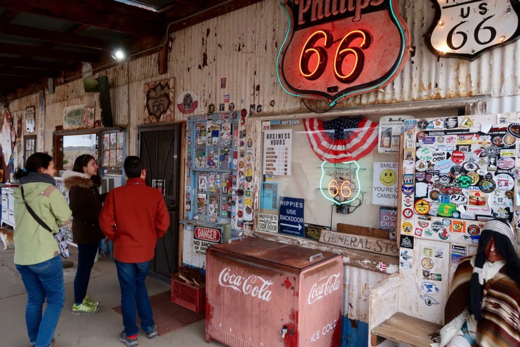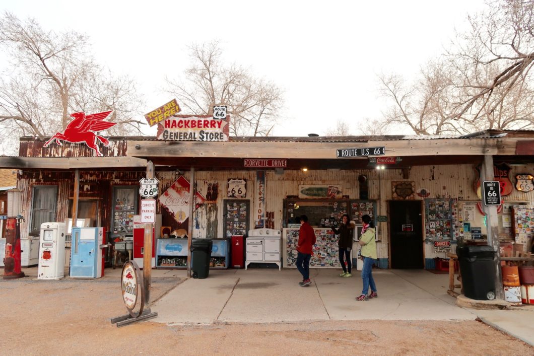 Au milieu de nul part, sur la Route 66 entre Kingman et Peach Springs, vous tomberez sur le Hackberry General Store, ancienne station essence abandonnée reconvertie en une sorte de musée boutique vraiment dans son jus et complètement à l'image de ce que l'on peut voir tout le long de ce périple.