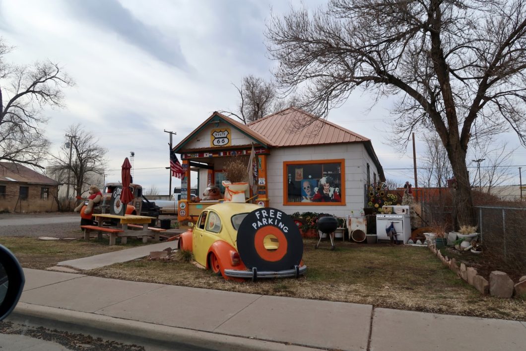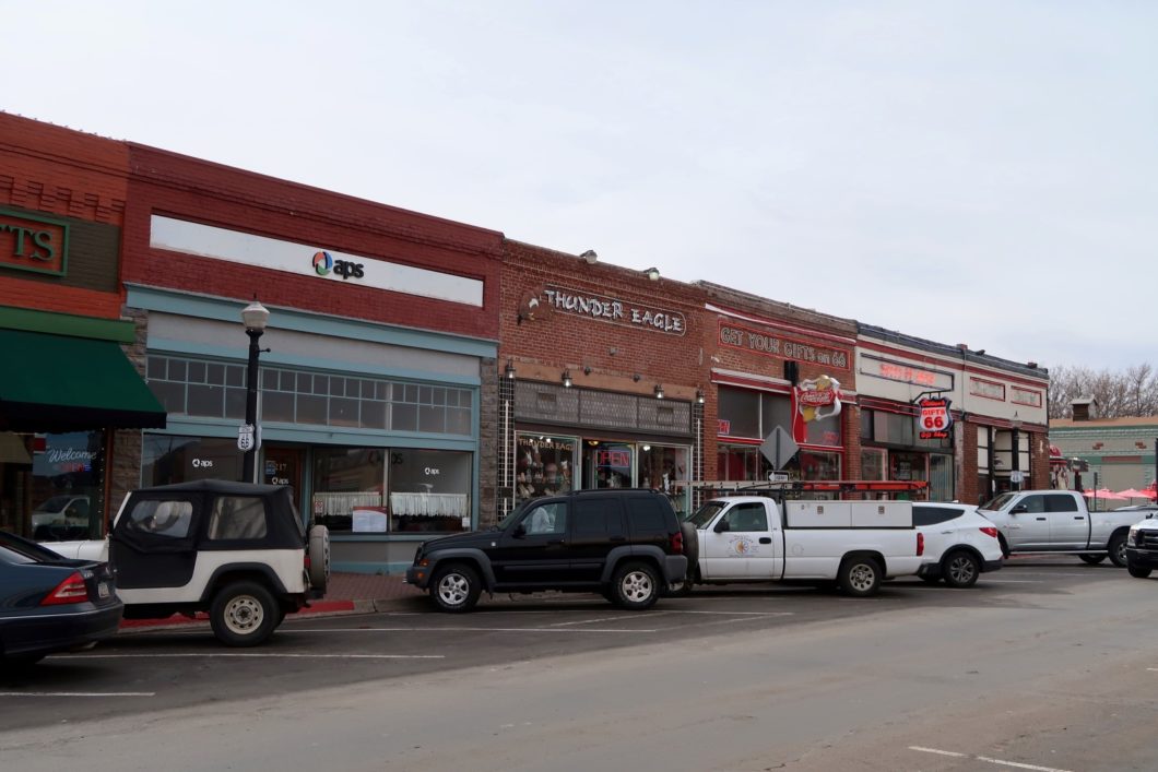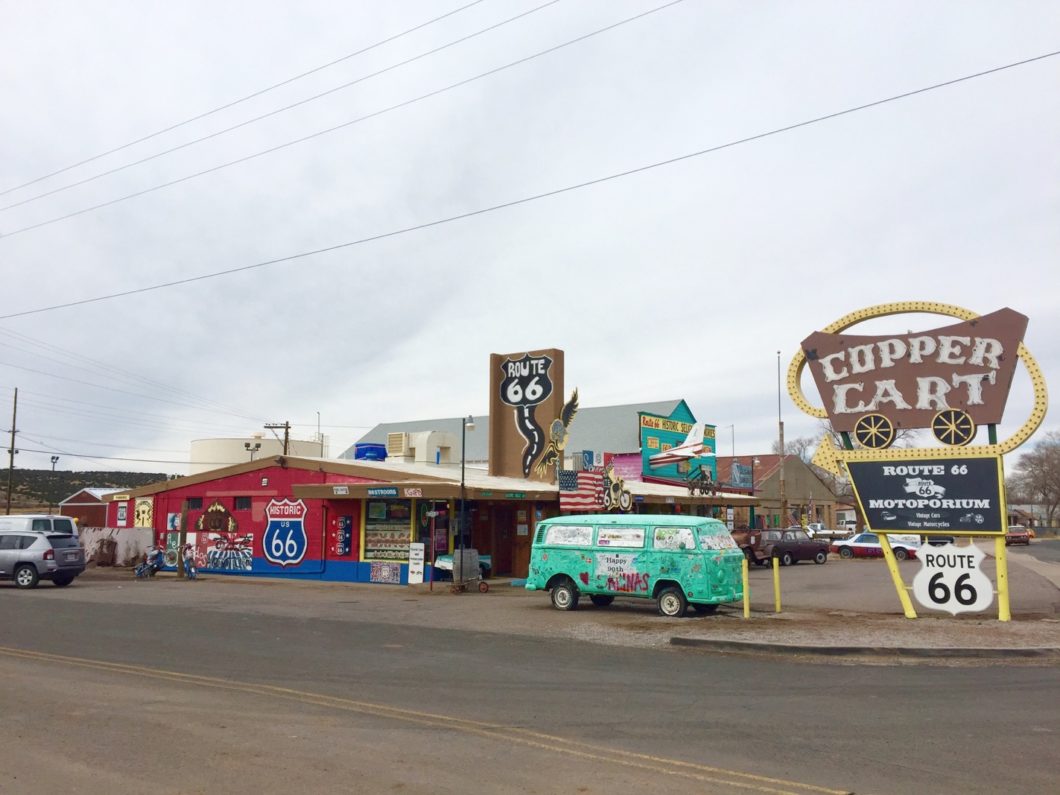 Vous trouverez ici des restaurants mais surtout des boutiques de souvenirs par dizaines, dont une qui accueille en son sein le plus grand panneau métallique de la Route 66.