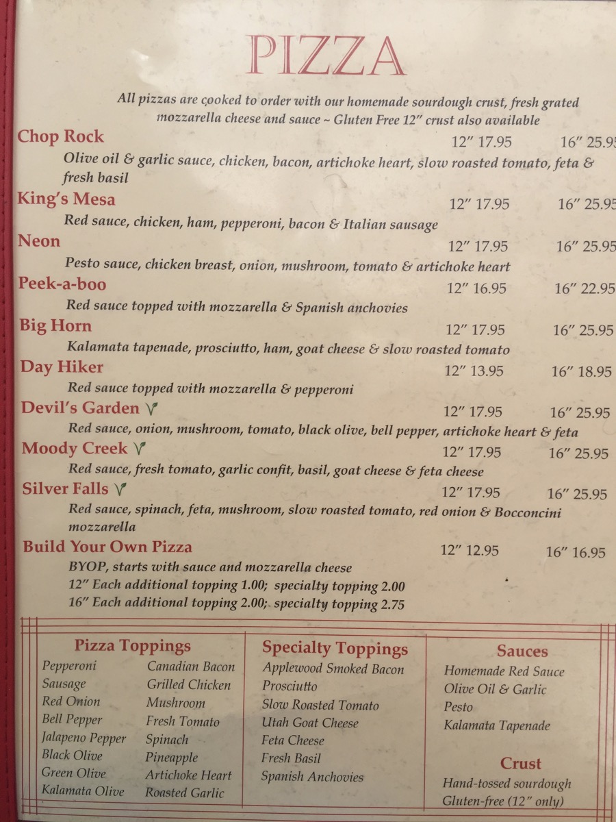 Pour les pizzas, il faut compter entre $12,95 et $17,95 pour les "petites" et jusqu'à $25,95 pour les grandes !!