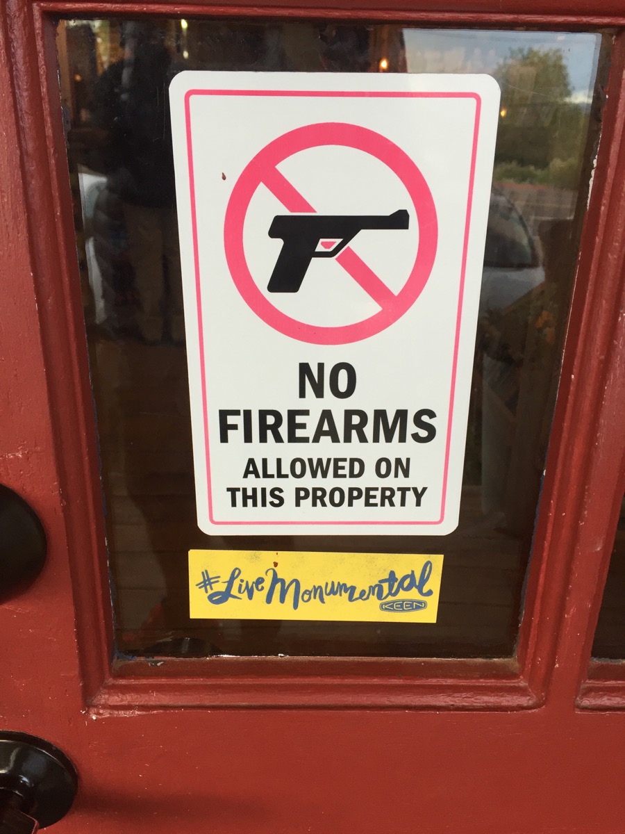 Attention, comme dans beaucoup d'endroits ici, interdiction de rentrer dans la boutique avec votre arme à feu !! 😉