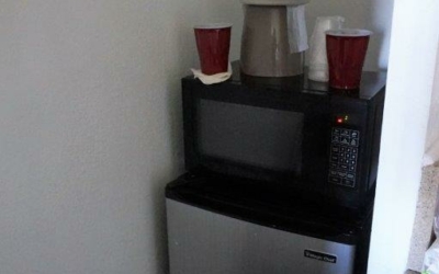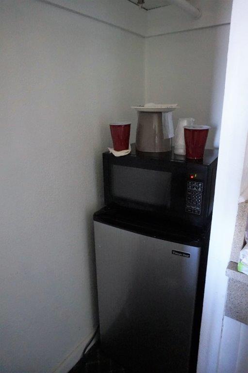 - Le frigo et le micro-onde, pratique pour y mettre quelques bouteilles d’eau et pourquoi pas des plats préparés à réchauffer. Ce n’est pas de l’électroménager de dernière génération mais ça passe. Surtout n’oubliez pas les doses de café soluble ! Il n’y a pas de cafetières et le café en libre-service à la réception est très douteux.