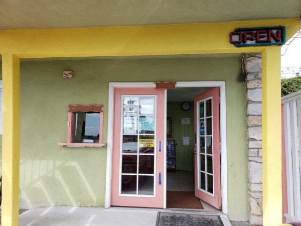Il est tout droit sorti des années 70’. Le choix des couleurs pour peindre la façade est plutôt inhabituel, rose, vert jaune ! L’avantage est de pouvoir le repérer de loin !