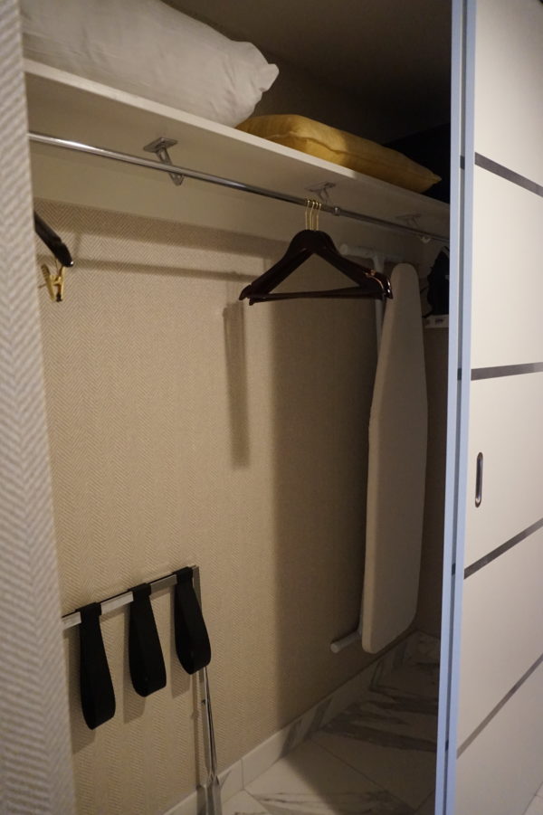 La chambre est très spacieuse. Si je ne suis pas une référence en taille, les trois personnes qui m’accompagnaient étaient mon mari (dans les 1.85m), son cousin (même taille) et une amie athlète, membre de l’équipe Olympique américaine qui mesure un petit 1.83m… Et biens nous avions assez de place !