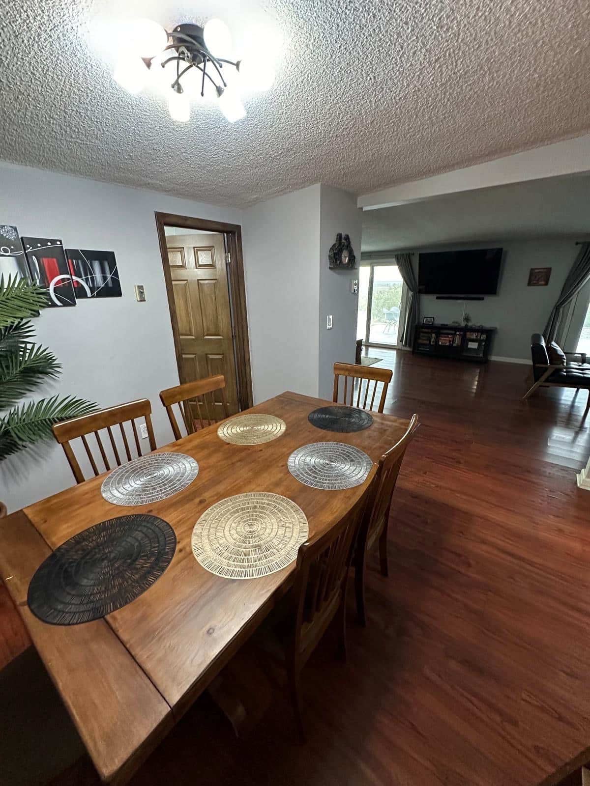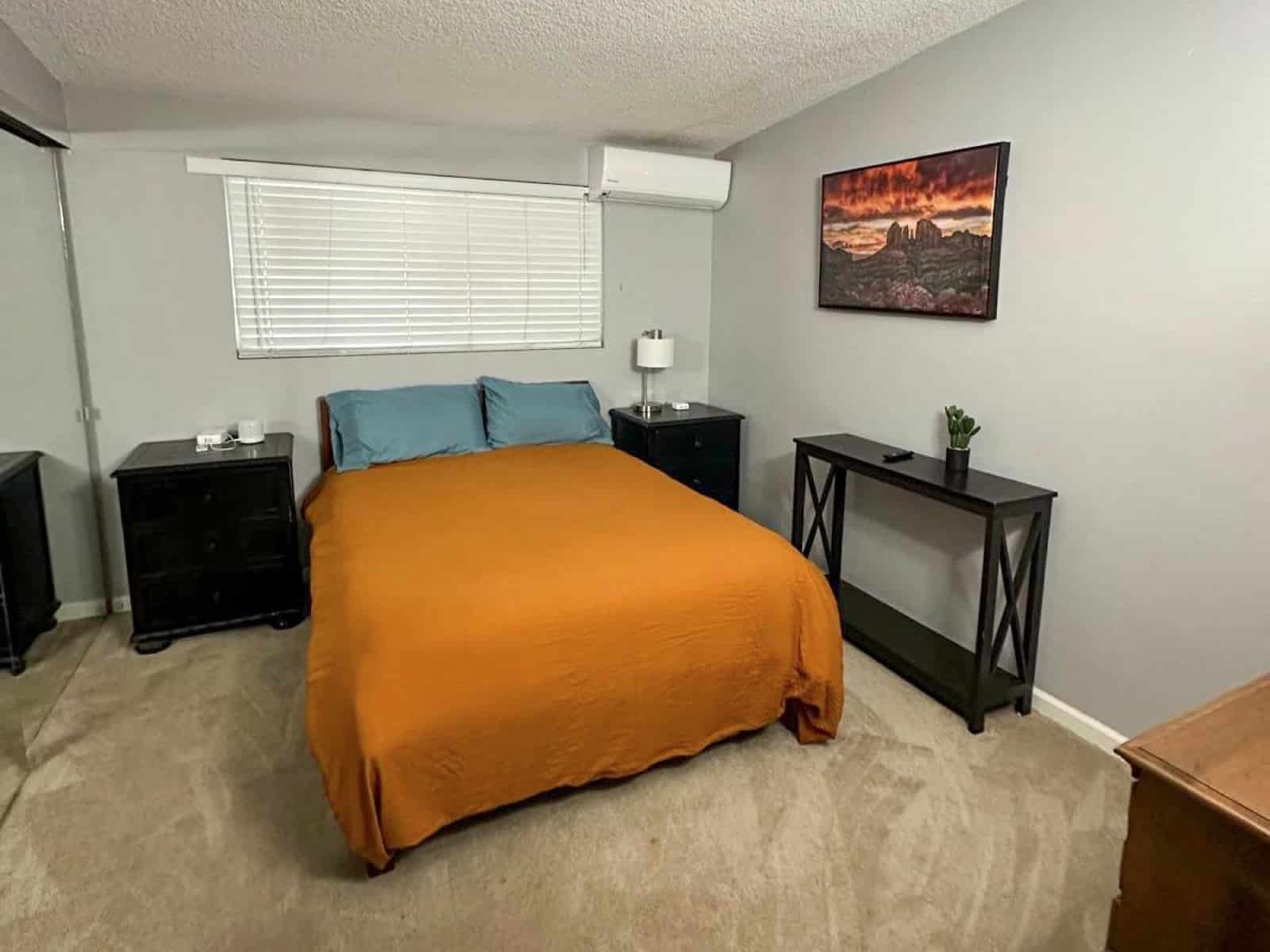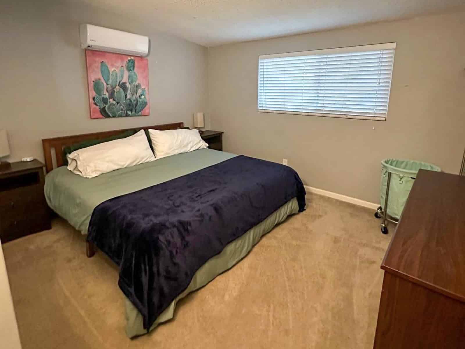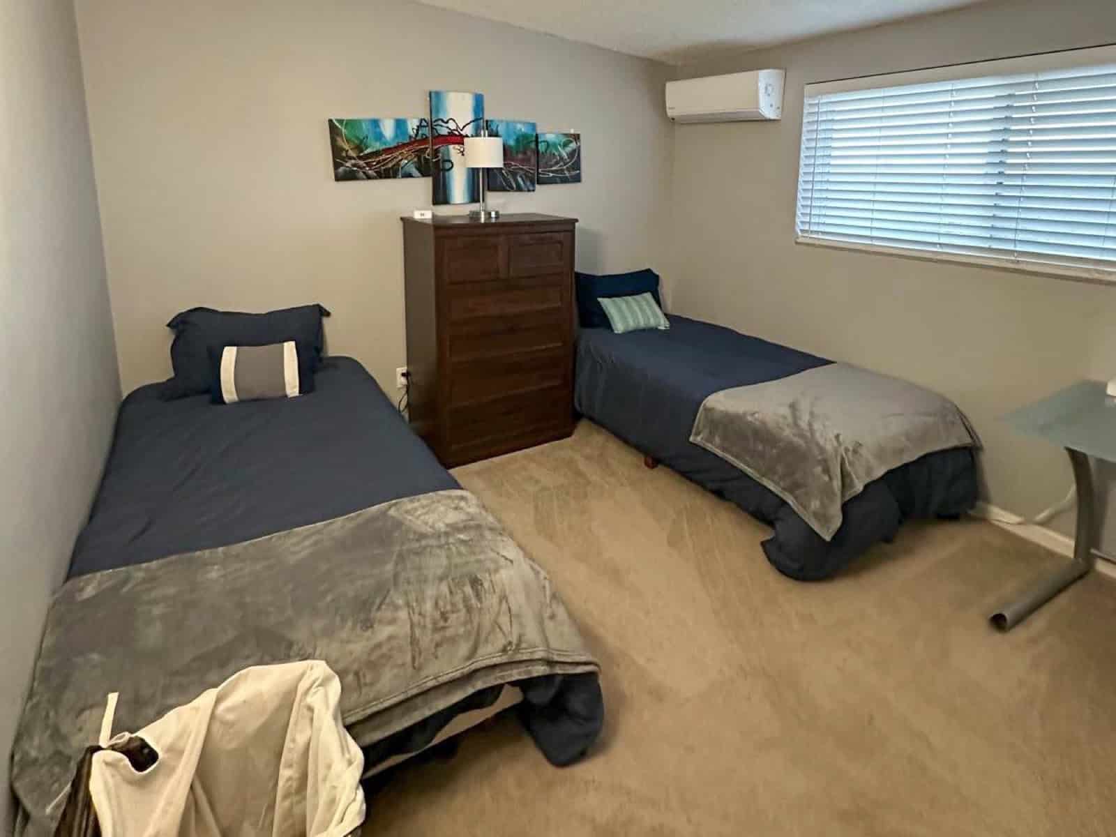 Avec ses 4 chambres, ses 2 salles de bain, l'Airbnb peut accueillir jusqu'à 10 voyageurs. On a une chambre avec un lit king size, 2 chambres avec des lits queen size et une dernière avec 2 lits simples.