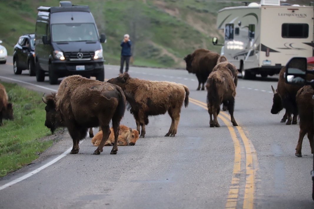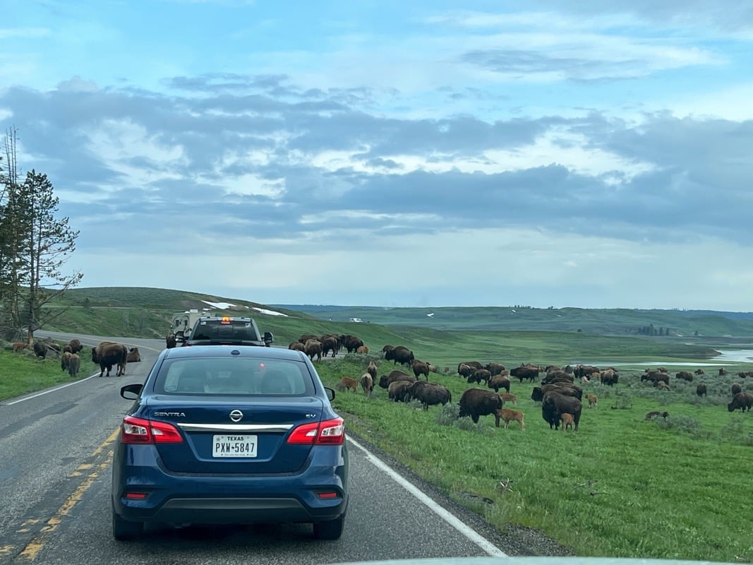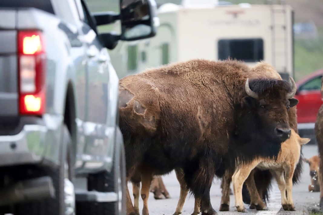 Le Bison Jam est littéralement un bouchon causé par des bisons.