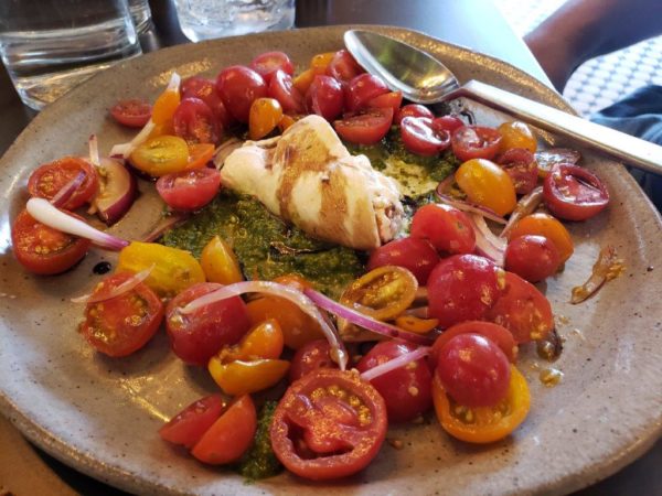 Et on a partagé une salade de Tomates Locales (avec de la mozzarella Burrata).
