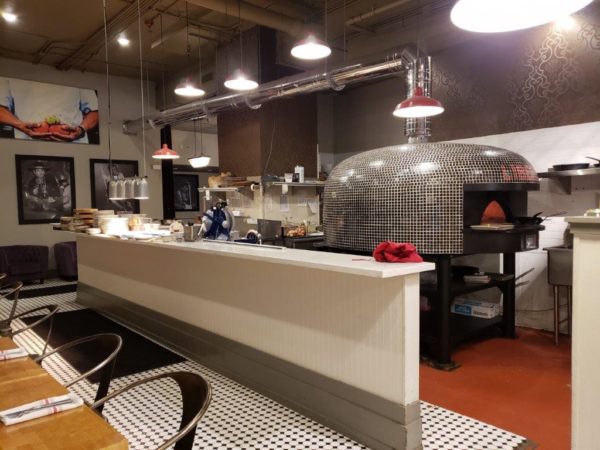La cuisine est en partie ouverte et je peux vous dire que ça sent super bon, surtout en s’approchant du four à pizza.
