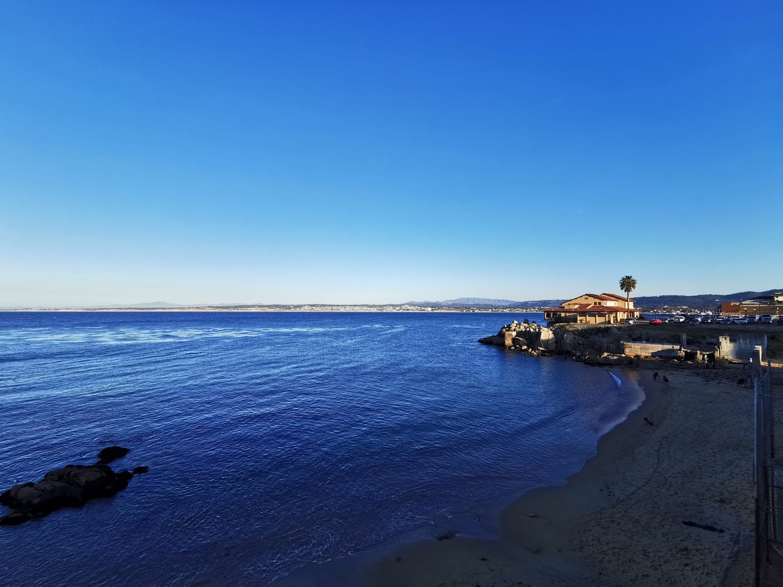 Je vous conseille de demander à manger à l'extérieur. La vue sur la baie de Monterey est magnifique. Et même en plein hiver, il y a un dispositif de chauffage. Manger avec une vue comme ça, c'est vraiment le top !