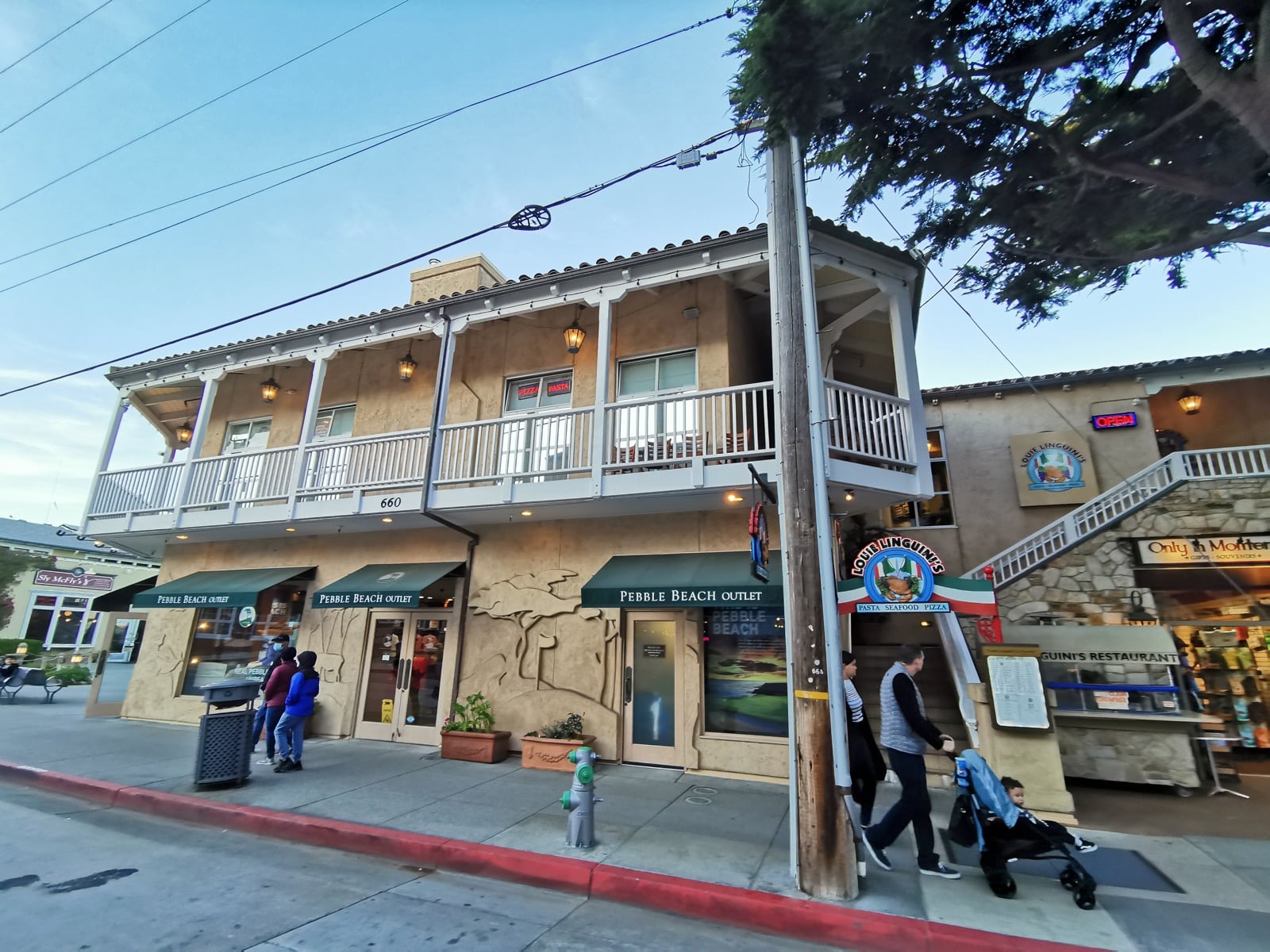 Louie Linguini's est situé à l'étage d'un bâtiment du quartier emblématique de Cannery Row de Monterey. Au niveau de la rue, vous avez un magasin de souvenirs avec de nombreux articles de vaisselles et cuisines. Le magasin et le restaurant sont effectivement gérés par les mêmes propriétaires. A l'étage, on trouve donc une grande salle immense et une petite partie du restaurant en extérieur. La décoration n'est pas le point fort de l'endroit, mais si vous êtes en terrasse, c'est la Baie de Monterey qui devient la décoration.