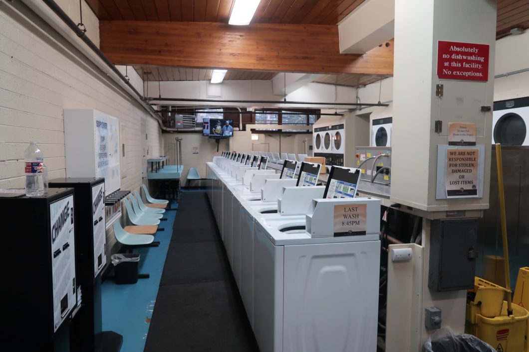 A l'extérieur, comme précisé plus haut, vous trouverez une laverie avec machines à laver, sèches linge, distributeur de lessive. Il y a dans ce bâtiment un changeur de monnaie qui vous donnera des pièces de 25 cents pour le fonctionnement des machines.