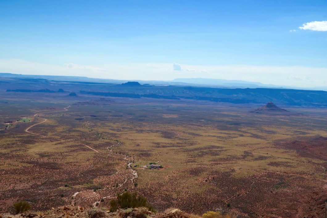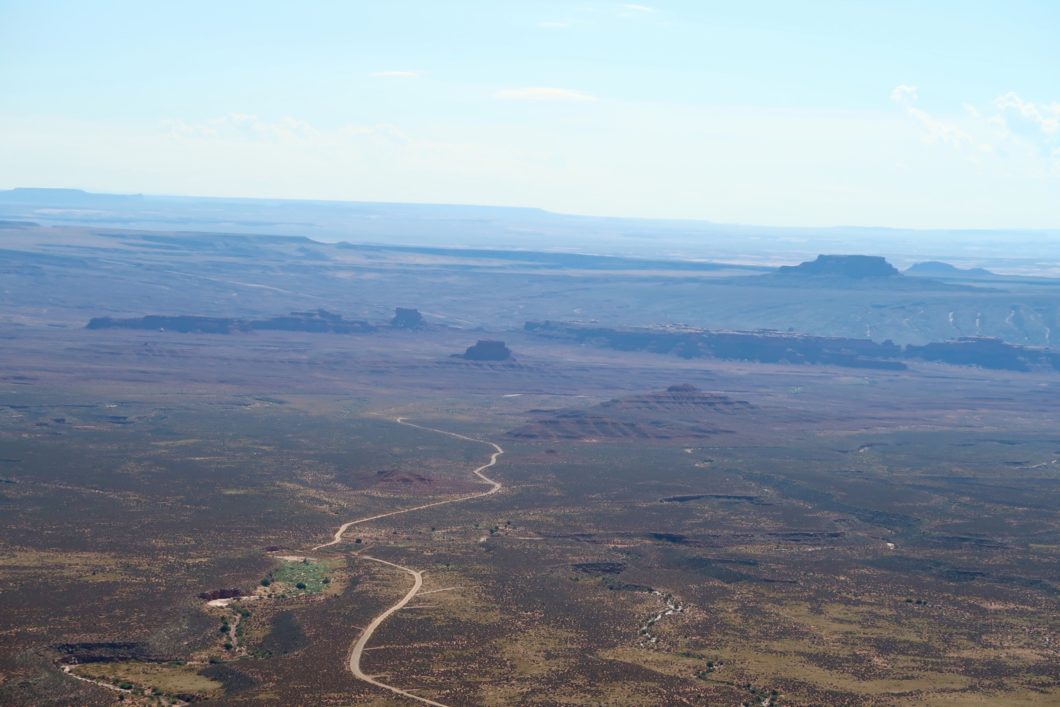 Vous dominerez la piste de Valley of the Gods et au loin si le temps est dégagé, vous pourrez apercevoir les premières mesas et buttes de Monument Valley.