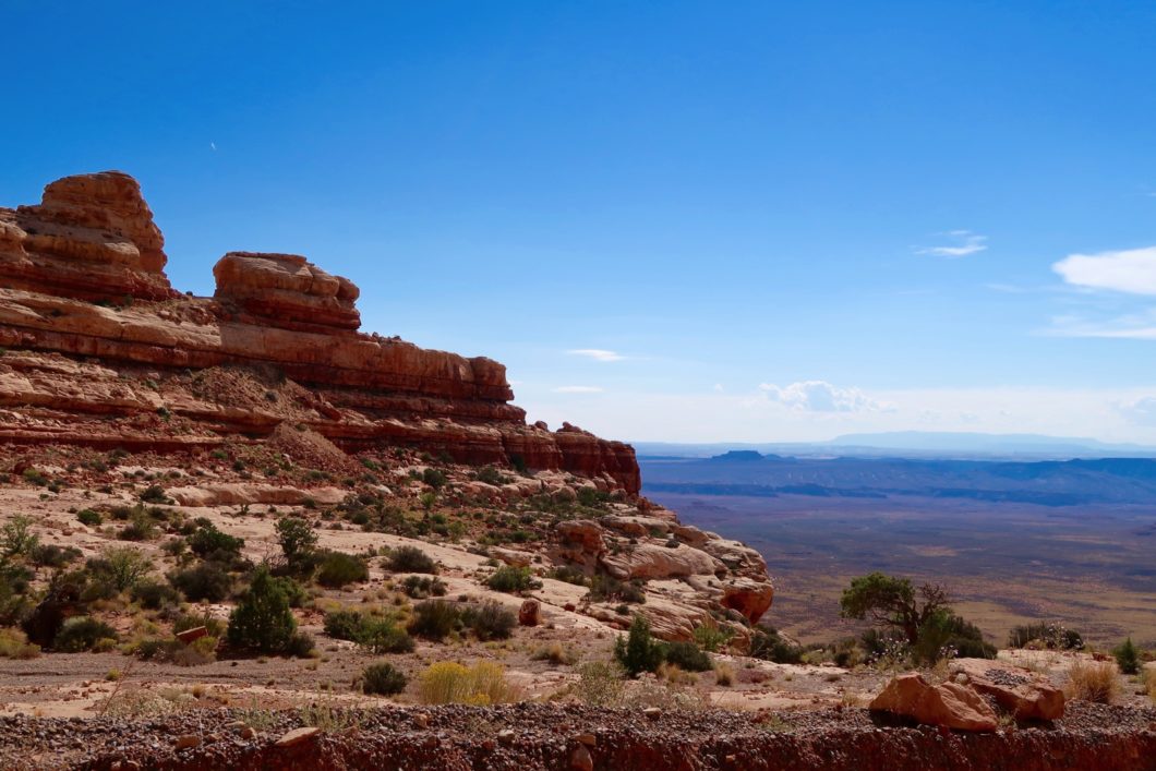 Enfin, si vous venez de Natural Bridges National Monument, vous arriverez par le haut de la UT 261 et il vous suffira de descendre les lacets de Moki Dugway.