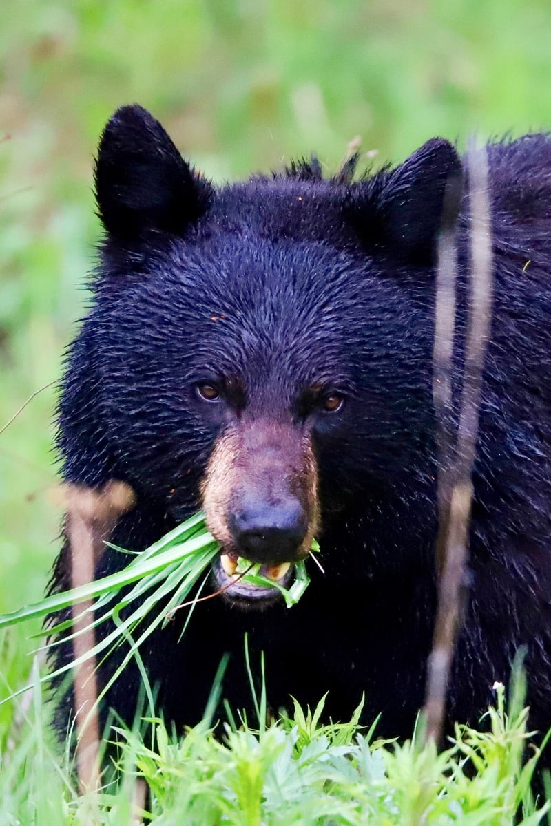 Il s'agit de l'espèce la plus représentée dans les deux parcs. C'est aussi la plus "petite" des deux. Le mâle fait entre 100 et 200 kg et la femelle entre 75 et 200 kg. En général l'ours noir a les hanches plus hautes que les épaules et une silhouette générale qui a tendance a aller vers le bas si on part du popotin jusqu'au visage. Ses oreilles sont un peu plus longues ainsi que son museau qui a tendance a être plutôt droit. Et ça, mieux vaut ne pas les voir, mais ses griffes sont plus petites.