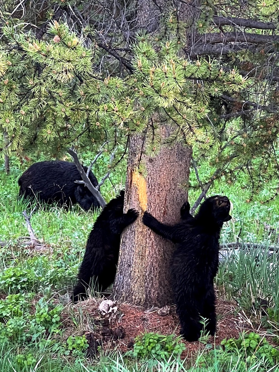 Le soir même en rentrant à West Yellowstone on a croisé la route d'une maman Grizzly avec ses 2 petits dans un bear jam au nord de Beryl Spring. On n'a pas pu s'arrêter mais ce coup ci on les a pas loupé contrairement à la veille, une journée bien remplie !