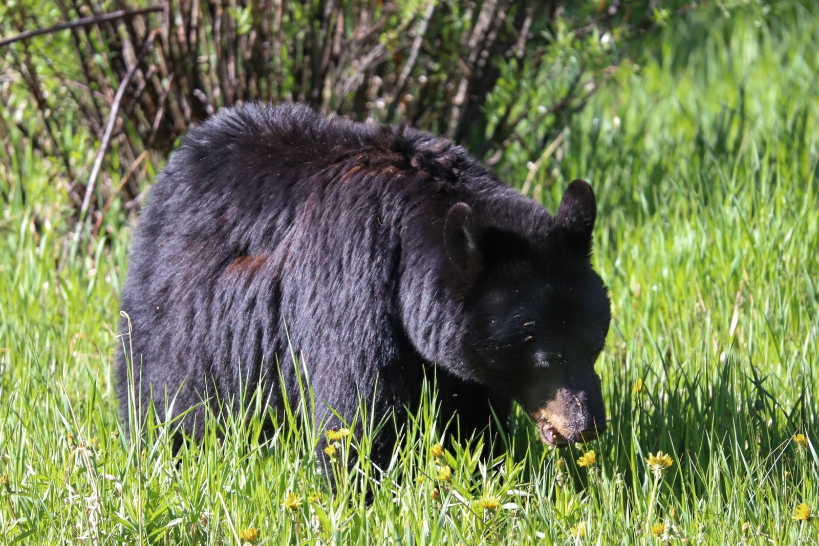 Et sinon, sur les contreforts des montagnes, aux abords des lacs, j'ai observé de nombreuses traces et c'est là, sur un sentier que j'ai fait ma plus belle rencontre avec un magnifique ours noir cannelle !
