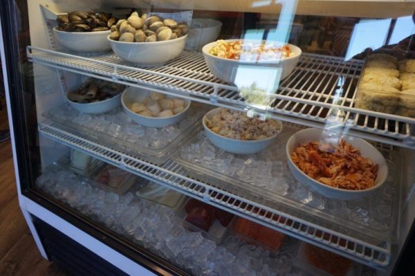 Dès l'entrée du resto, on tombe tout de suite sur la vitrine réfrigérée et ses poissons frais.