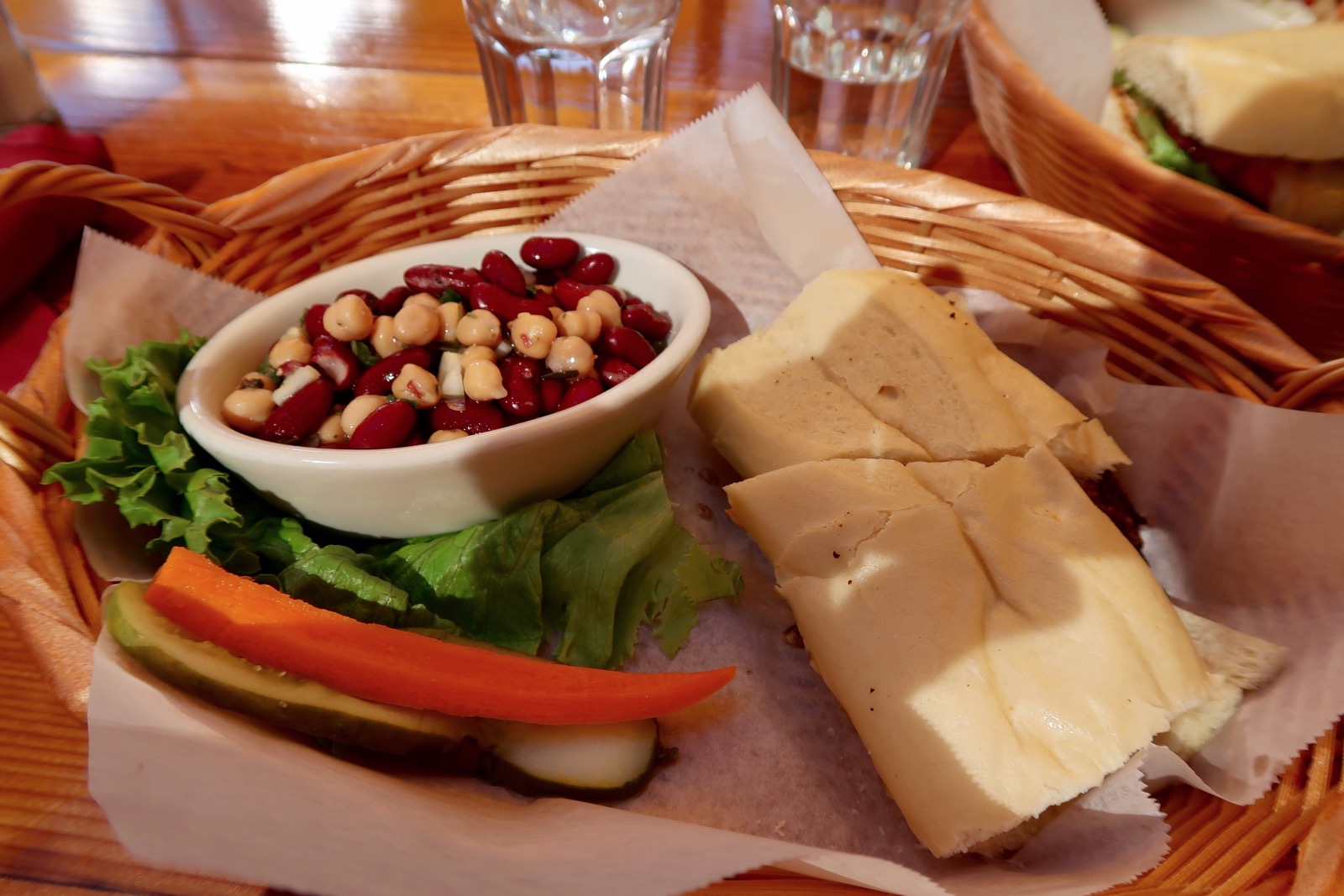 Même si ce n'est pas le meilleur burger que j'ai pu manger, c'est très bon. Le tout est servi avec un accompagnement au choix. Pour ma part, je me suis laissé tenter par une salade de haricots rouges et pois chiches, un vrai régal.
