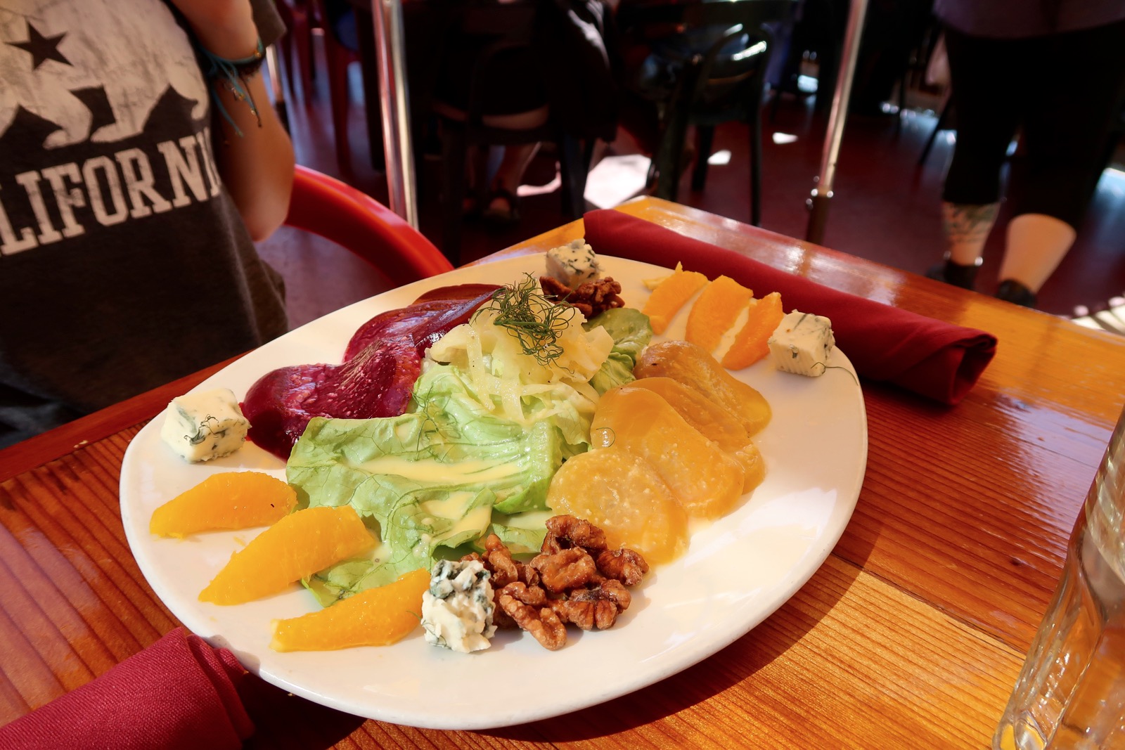 Ma fille s'est régalée avec sa salade de betteraves, "beet" en anglais, que l'on retrouvera dans de nombreux autres plats en Californie.