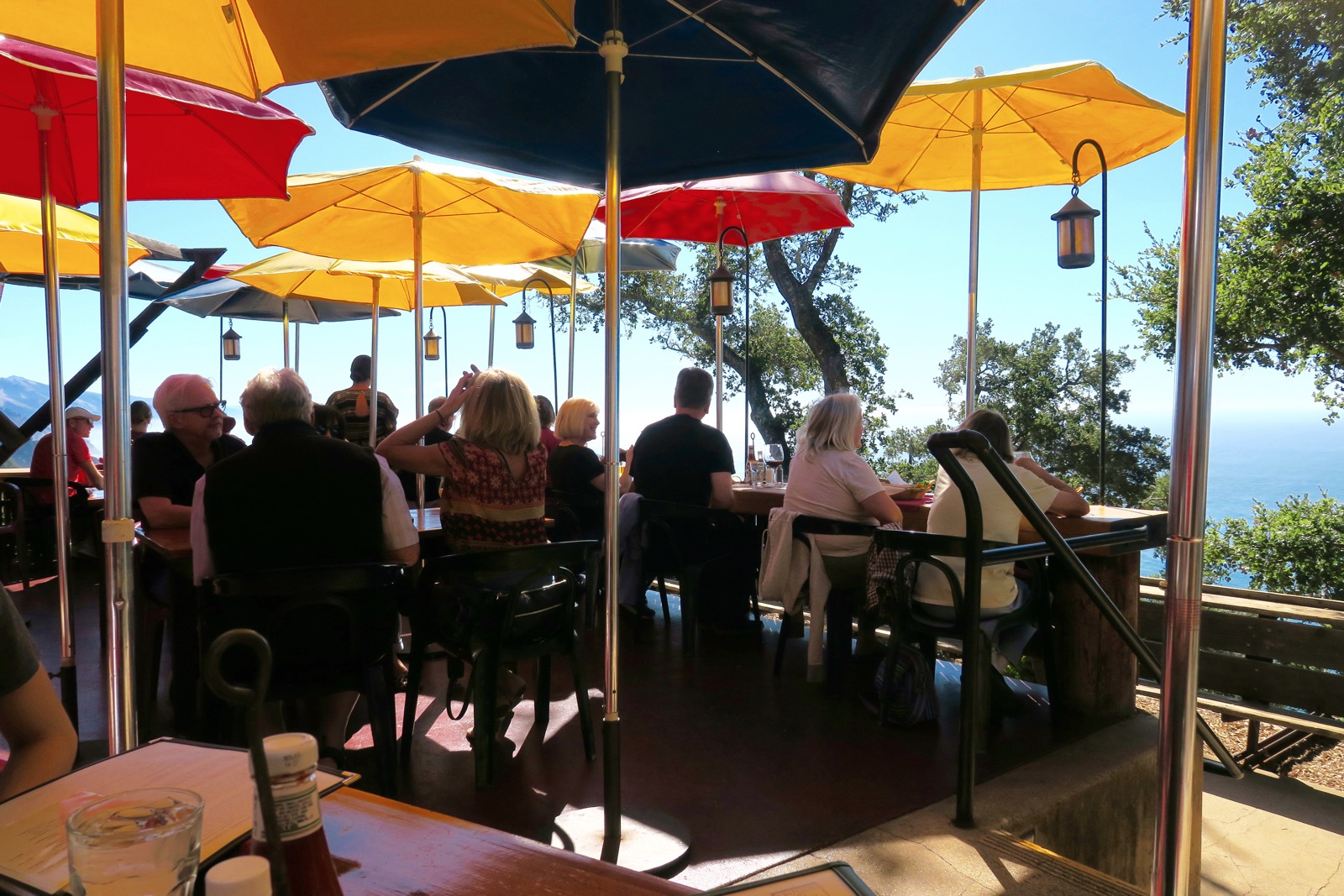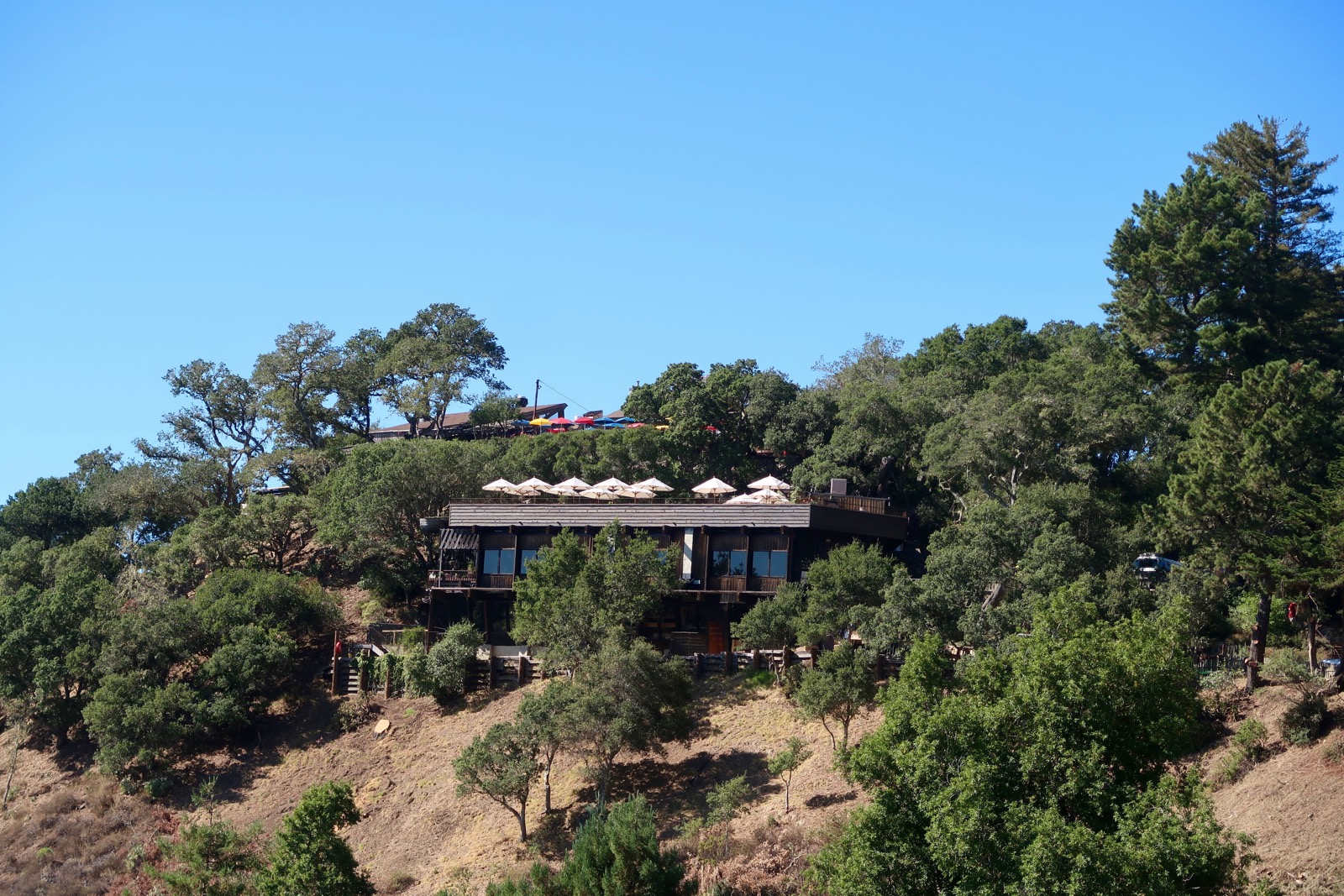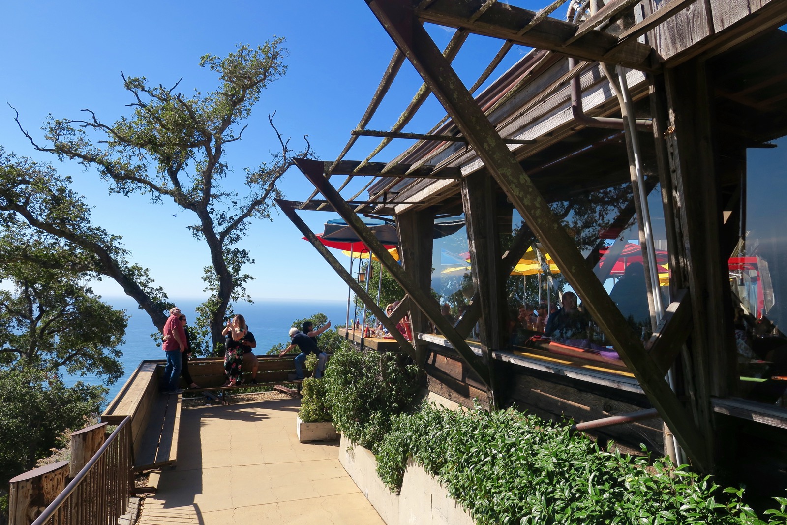Le site regroupe en fait trois enseignes différentes, le Nepenthe, au sommet de la falaise, le Café Kevah en dessous avec lui aussi sa belle terrasse