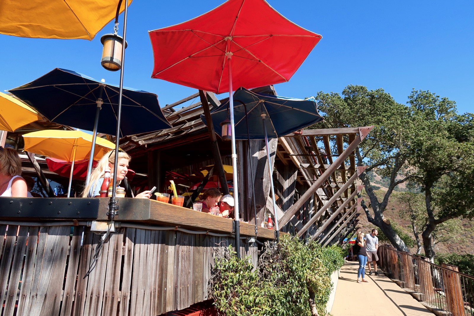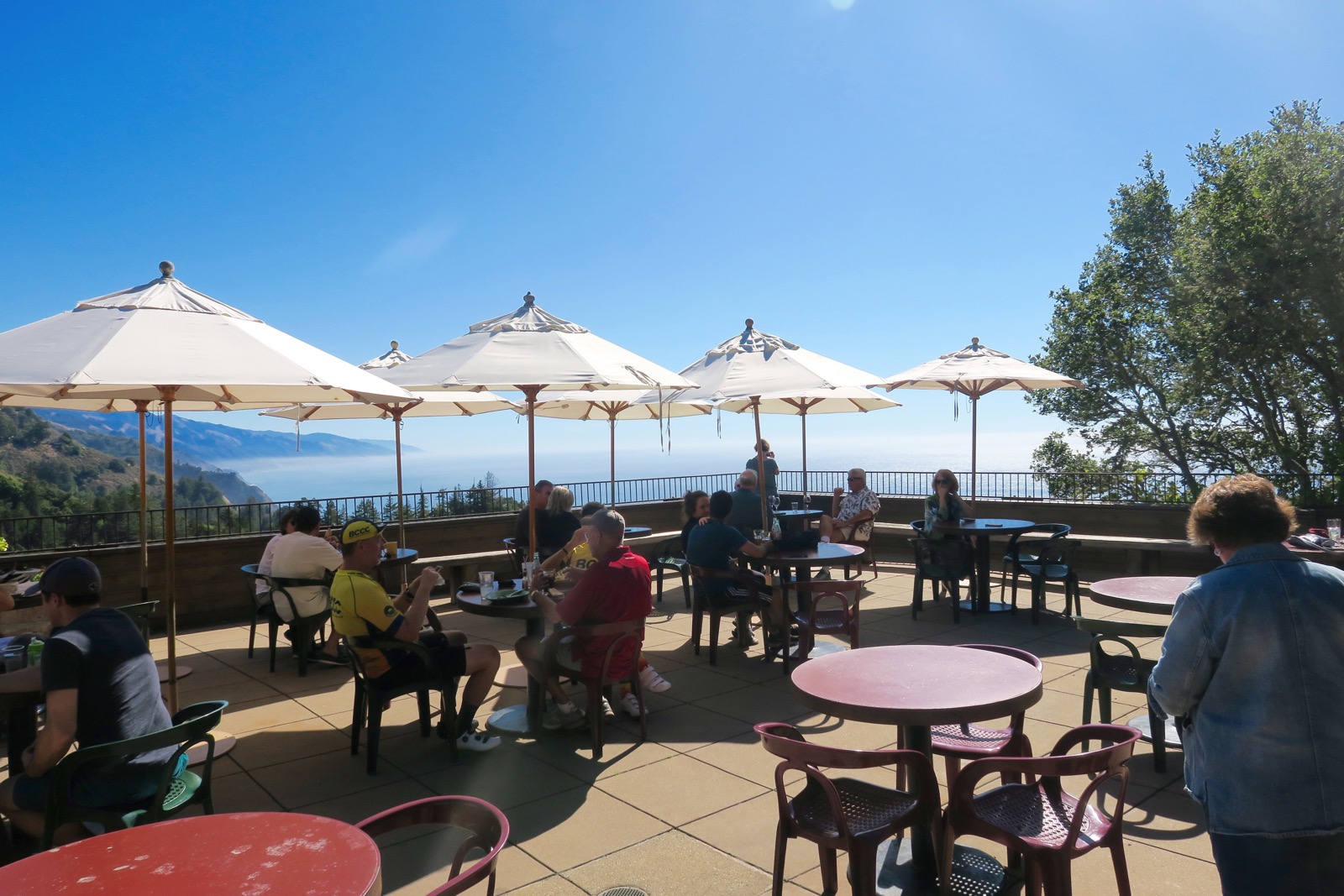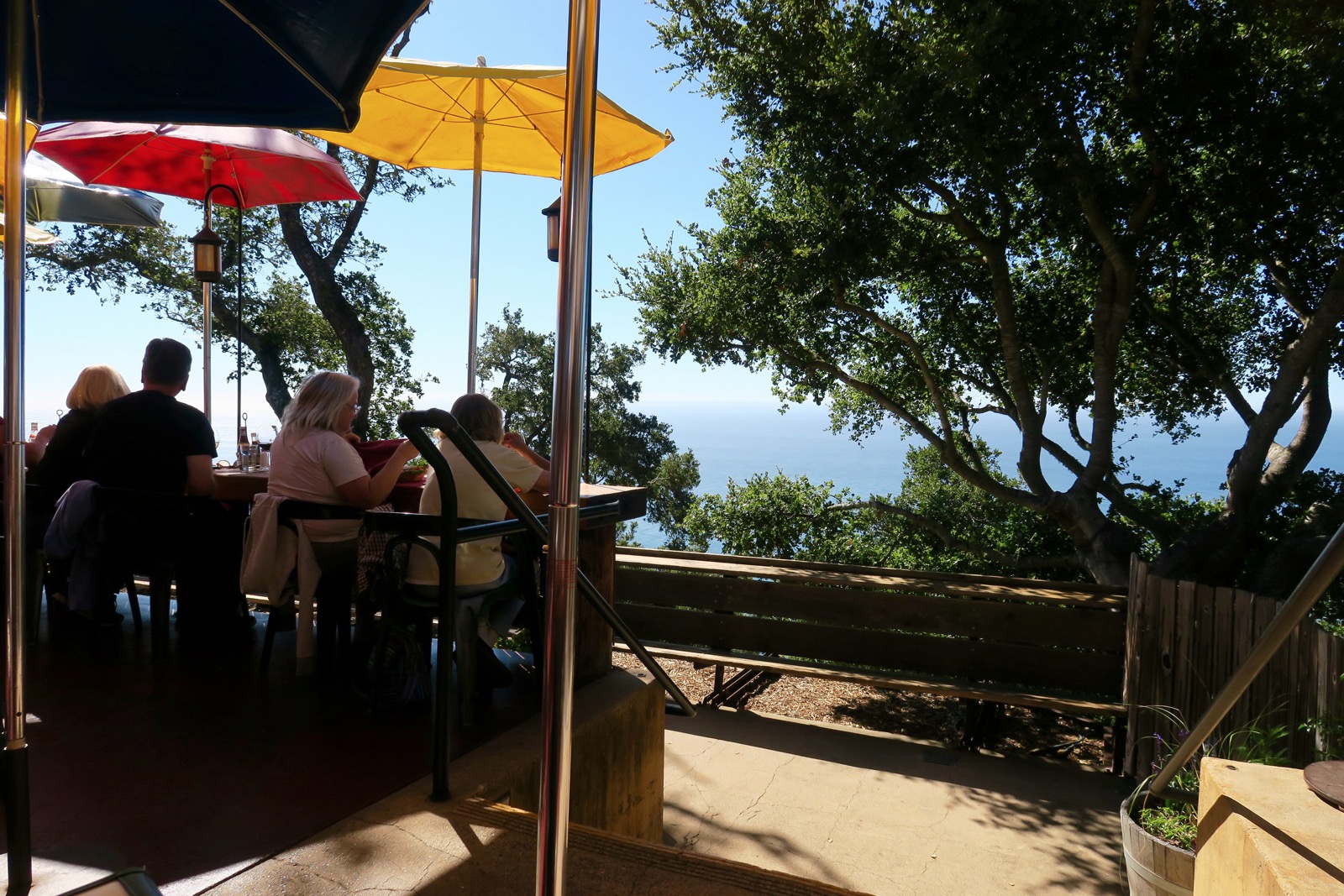 Le site regroupe en fait trois enseignes différentes, le Nepenthe, au sommet de la falaise, le Café Kevah en dessous avec lui aussi sa belle terrasse