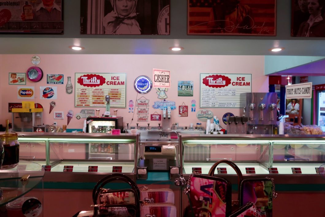 Il y a une immense boutique de souvenirs à l'effigie de la Route 66, de la Californie ou des stars comme Marylin Monroe ou Elvis Presley.