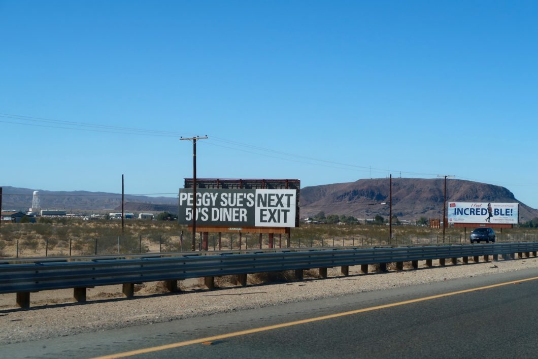 Alors, même si le cadre y fait penser, Peggy Sue's ne se situe pas sur la Route 66 mais à proximité de l'I15 qui relie Los Angeles à Las Vegas.