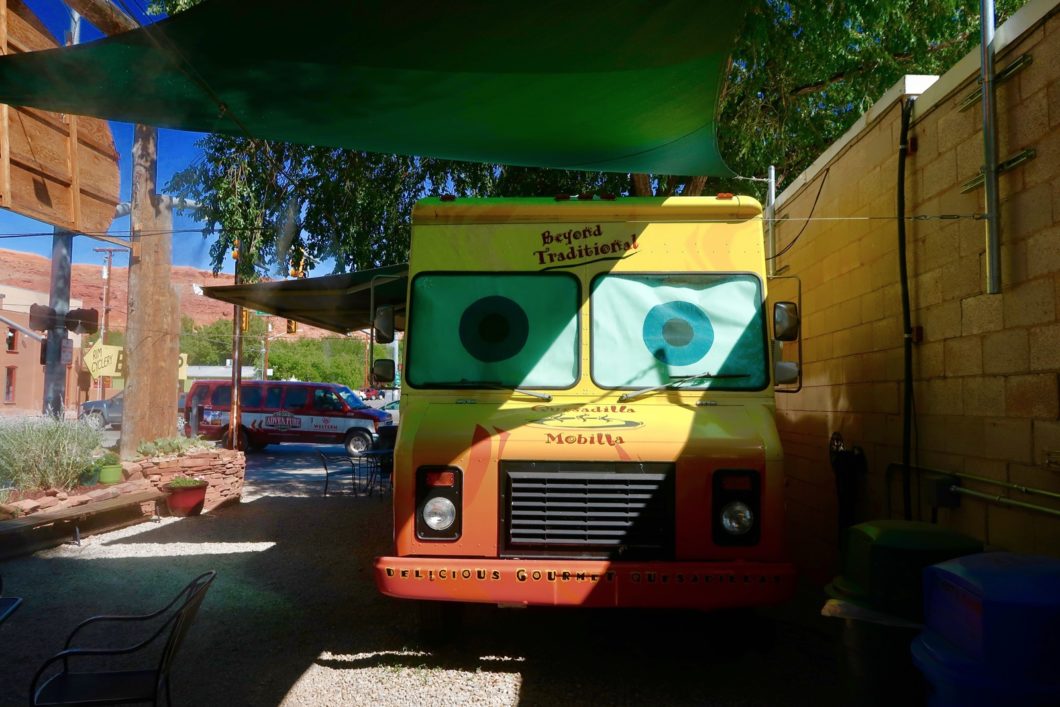 Si entre deux randonnées dans les parcs avoisinants vous avez envie d'un bon petit casse-croûte ou si vous rentrez tard d'une randonnée matinale, alors n'hésitez pas et allez vous rassasier chez Quesadilla Mobilla. Cela vous changera des restaurants traditionnels et, pour ne rien gâcher, la qualité et la quantité sont au rendez-vous, d'ailleurs ce n'est pas pour rien si ce restaurant atypique figure au premier rang des restaurants à Moab !!