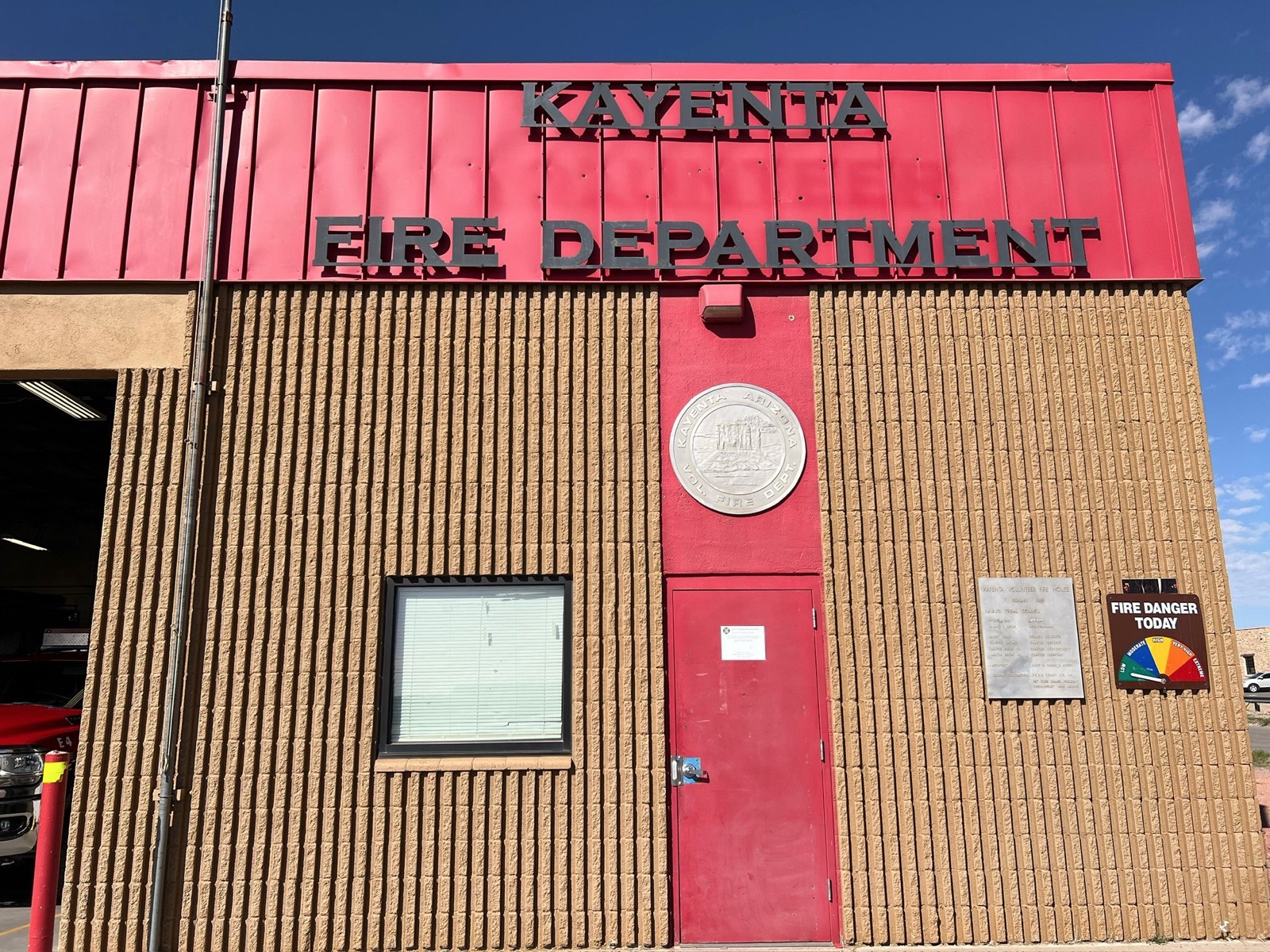 Lors de ce road trip avec mes California Girls, notre Martine nationale avait un rêve, rencontrer des pompiers. Les occasions n'ont pas manqué mais soit on voyait la caserne au dernier moment, soit on ne la voyait pas, etc. Après avoir quitté Monument Valley de bonne heure le matin, nous voilà en train de traverser la ville de Kayenta. En passant, je vois sur la droite la caserne des pompiers de la ville.