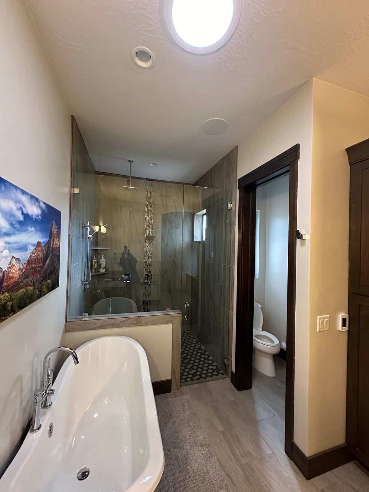 4 salles de bain pour 7, c'était là encore parfait !! J'ai testé la cabine de douche d'une des suites parentales !! Pas moins de 3 pommeaux de douche !! Digne d'un séjour en balnéo !! Et la taille de la douche, je vous dis même pas !! On pouvait tenir à 7 !! Pas de soucis Marjo, j'en ai profité tout seul !! 😉