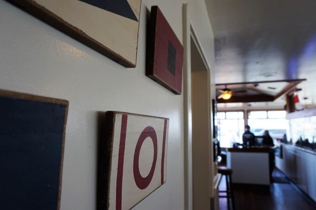 Il y a de très belles photos sur les murs, des poissons… Vous aurez compris que le thème principal est la mer.