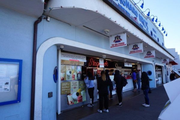 Sur la grande jetée de Santa Cruz s’alignent un grand nombre de magasins souvenirs et restaurants, dont le Stagnaro Bros. L’établissement ressemble à un bateau de pêche et en cuisine on s’active pour servir de délicieux plats aux produits frais !