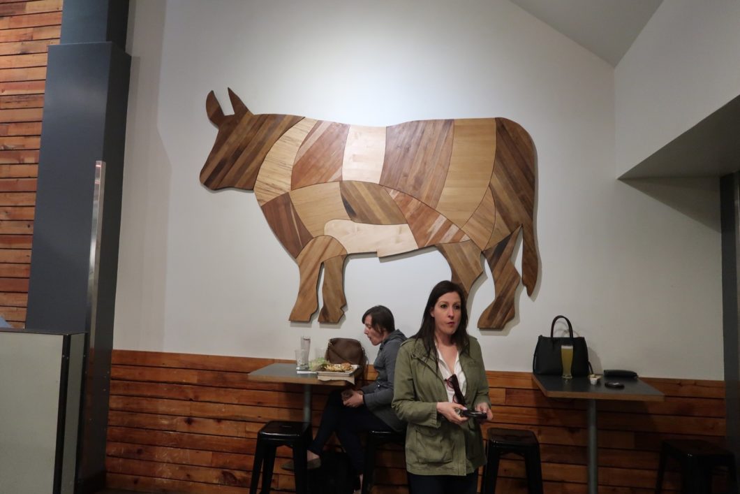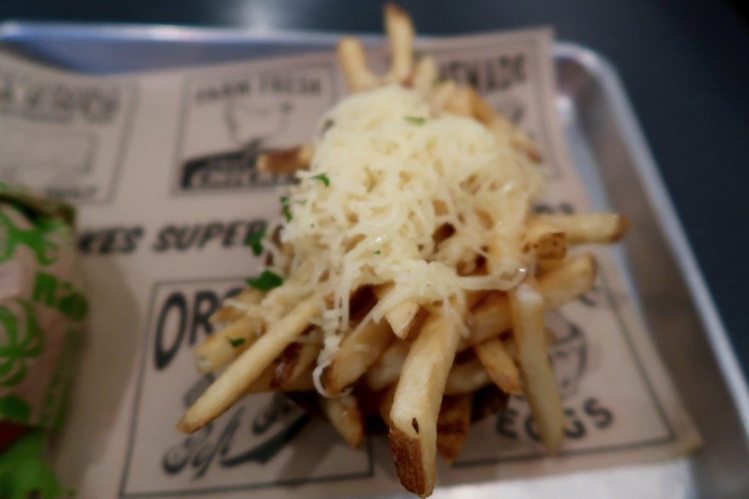 Du coup, les tarifs n'ont rien à voir avec ce que vous trouverez dans des chaînes comme In-N-Out, McDo, Wendy's, etc. car ici le burger classique est à $8,25 auquel il faut ajouter $O,75 pour du fromage et $1,25 pour du bacon. Les frites sont entre $2,75 et $3,5.