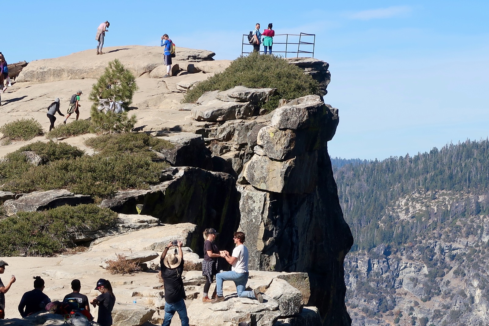 Je disais "avoir la chance... ou pas" car avec l'avènement d'Instagram, entre autres, Taft Point est devenu un lieu privilégié et très (trop) à la mode pour les photos de ce genre. Du coup ces couples se croient seuls au monde, un peu comme s'ils avaient privatisé le lieu et ils vous feront parfois attendre de longues minutes pour vous laisser la place afin qu'à votre tour vous puissiez prendre quelques photos...