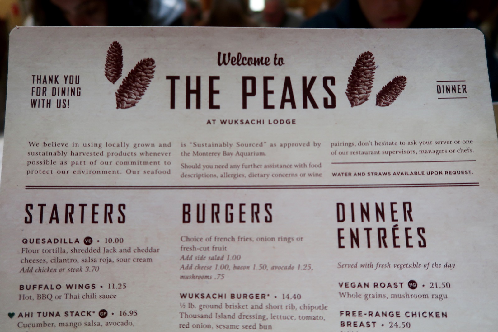 Lors de notre road trip et notre passage à Séquoia, nous avons séjourné au Wuksachi Lodge. L'hôtel étant un peu excentré et comme nous étions en fin de saison, tout était presque fermé dans les environs pour la restauration.