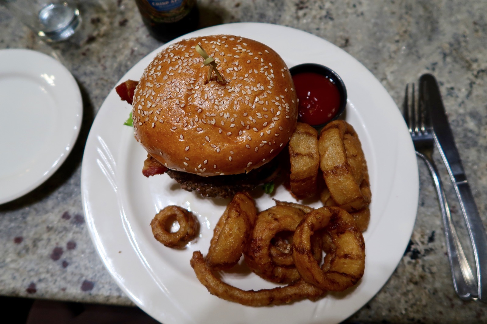 Nous nous sommes laissés tenter par le burger maison, vraiment très bien avec pour ma part de délicieux Onion rings, les meilleurs que j'ai pu manger à ce jour !!!!
