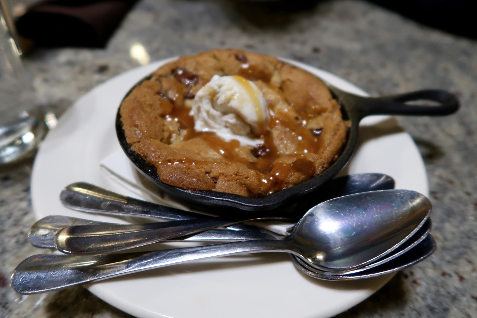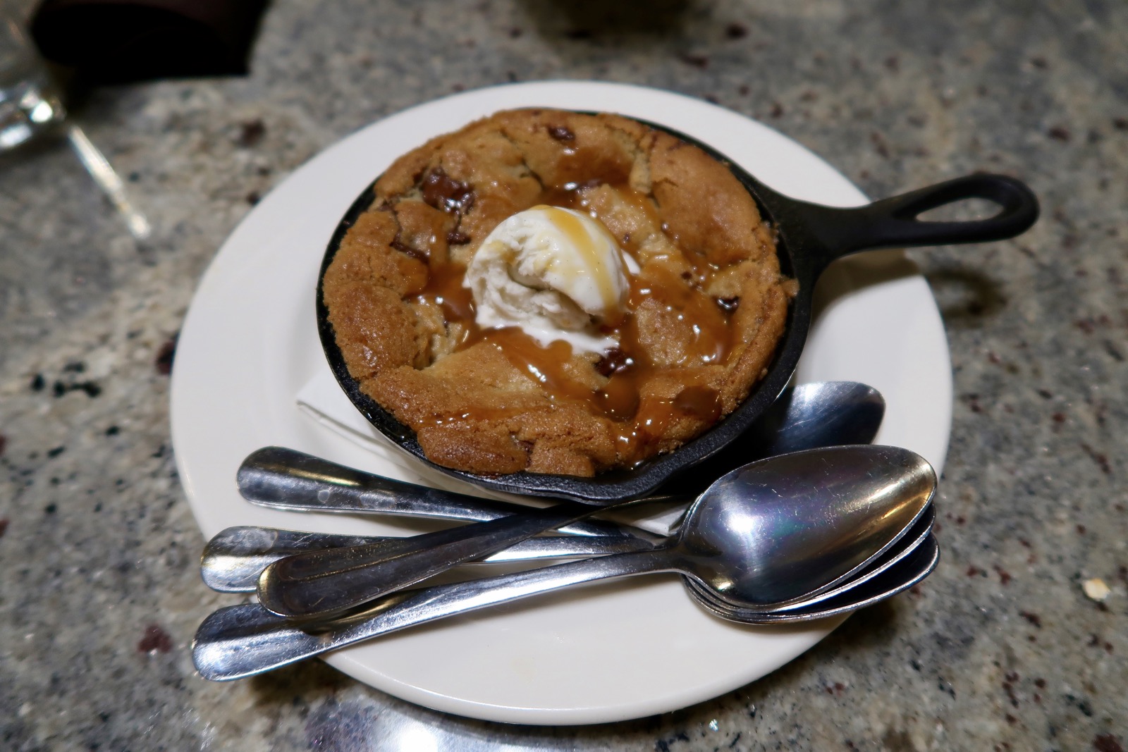 En dessert, nous avons pris un gros cookie chaud à partager avec la totale, boule de glace et caramel chaud, un vrai délice !!!!