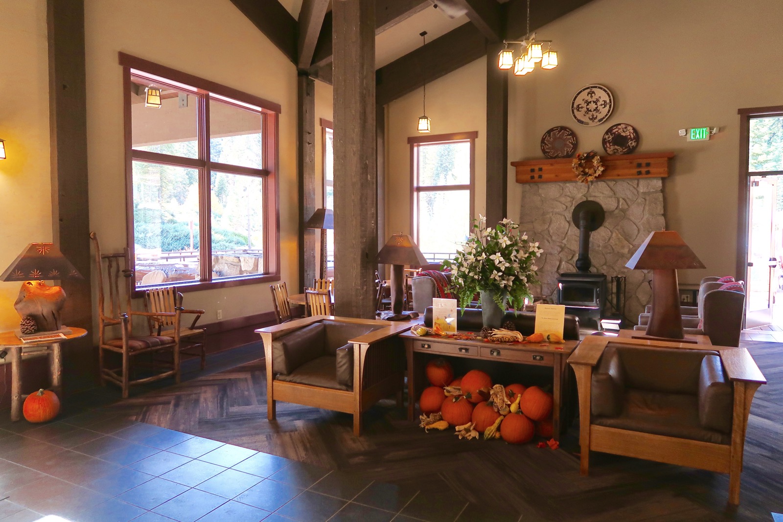 The Peaks est situé dans le bâtiment principal du Wuksachi Lodge, là où se situe le Lobby. Il y a un immense salon où vous pouvez vous reposer et un bar où boire un verre avant votre repas.