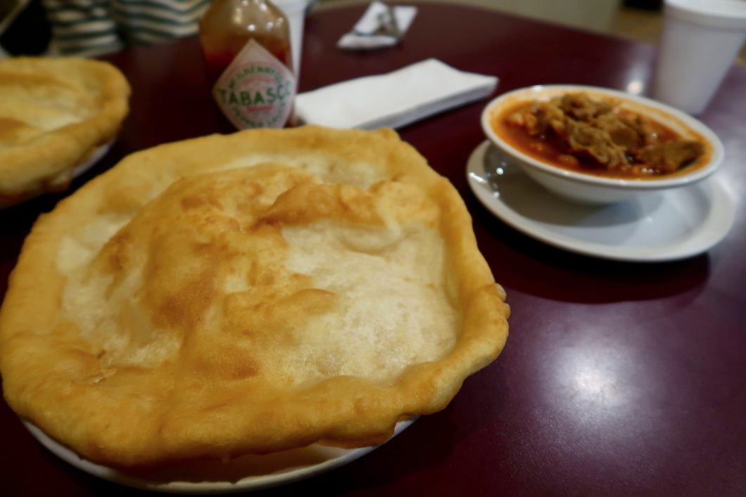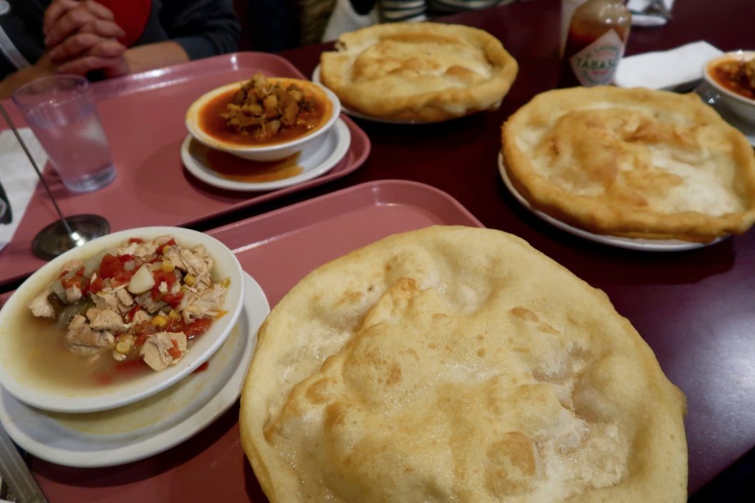 Nous avons pris des soupes accompagnées du fameux pain frit si cher à la cuisine Navajo.