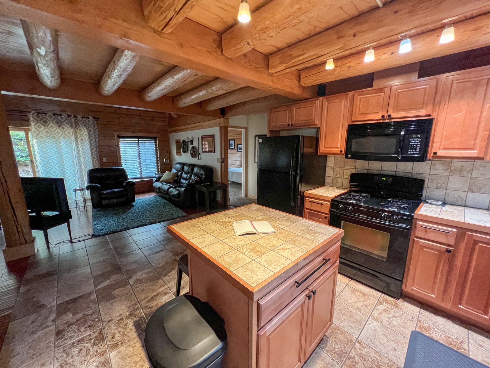 TOUT ! Rien ne manque !! Cet airbnb est parfaitement bien équipé. La cuisine tout d'abord, entièrement équipée, cuisinière géante, four de compet, micro-ondes, machine à café, bouilloire, broyeur dans l'évier (pas de doute, nous sommes en Amérique), etc. De quoi cuisiner de bons petits plats maison. On retrouve de quoi cuisiner, épices, condiments, il y a même des choses pour le petit déjeuner. Télé, cheminée, fauteuils hyper confortables pour de belles soirées, là encore c'est parfait. Dans les salles de bain, tout est là aussi, on peut venir les mains dans les poches !!